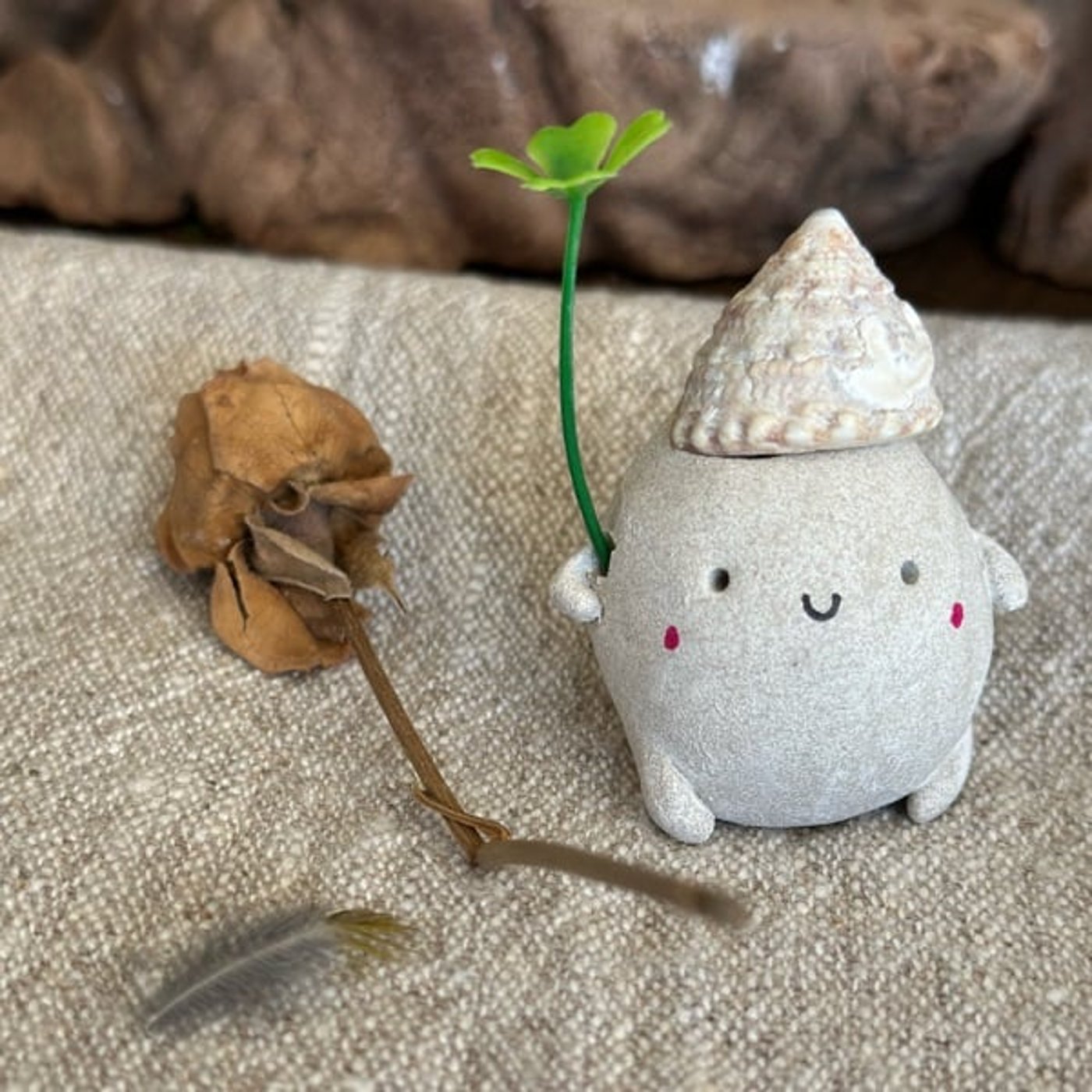 「やさしいせかいのえがきかた」という最近の取り組みや、葉山の海岸で集めた貝殻やシーグラスでつくるアート作品についてご紹介しています。