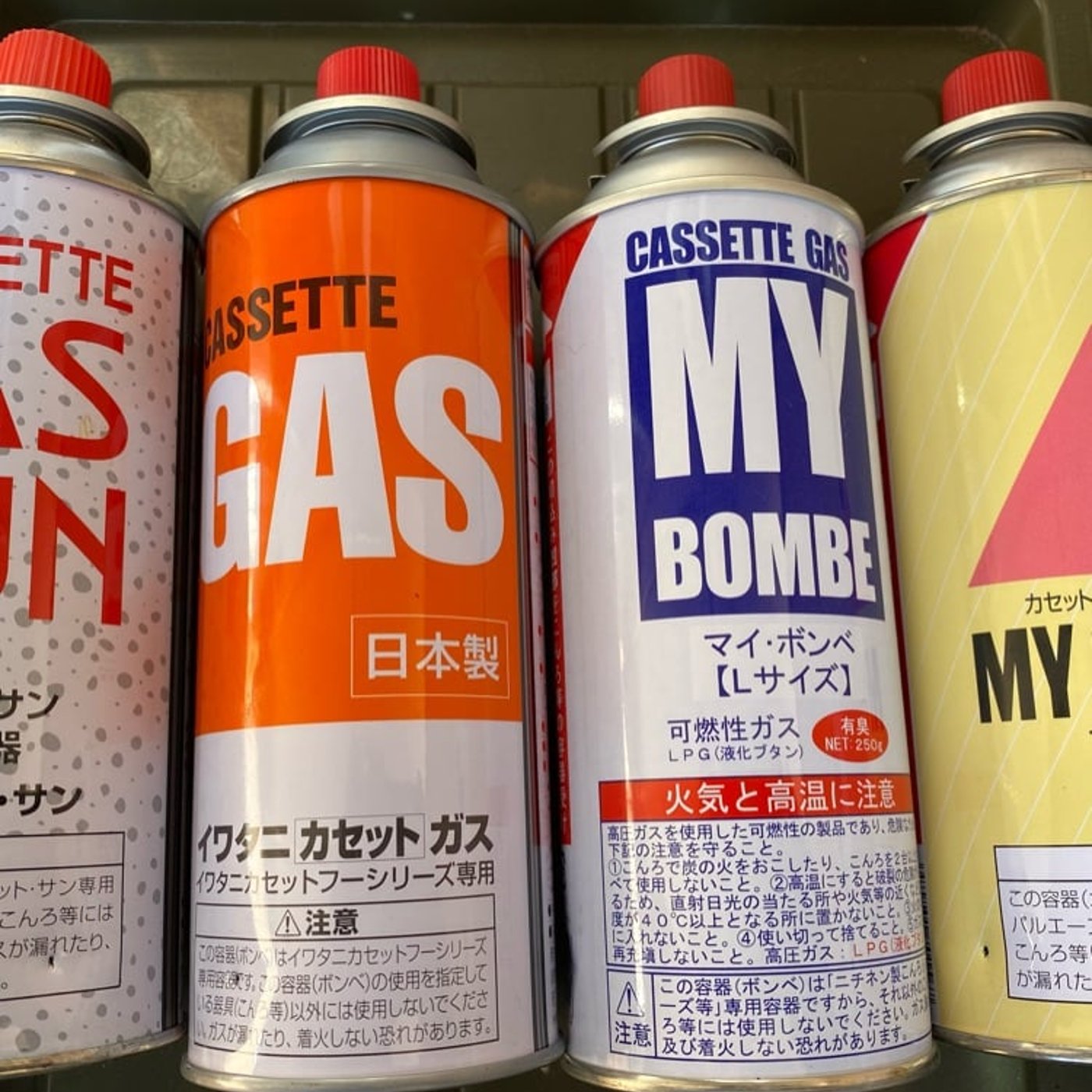 ・イワタニ純正(日本製) ・ニチネンマイボンベ(日本製) ・小池化学マイクッカー(韓国製) ・イワタニカセットガスサン(韓国製) ・TOHO純正(韓国製)(未使用)