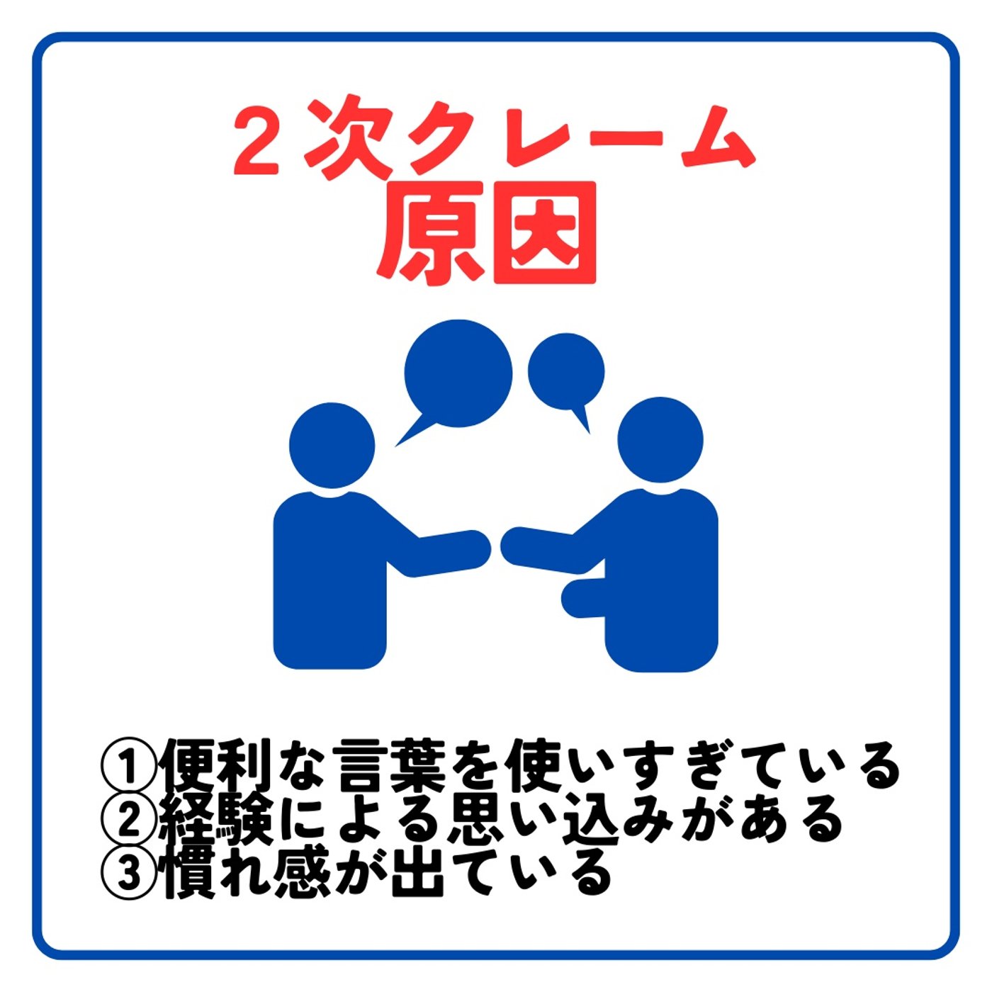 ※2次クレームというのは、お客様からの最初の不満に対して、お店や会社の対応が良くなく、さらに大きな不満を生んでしまうこと