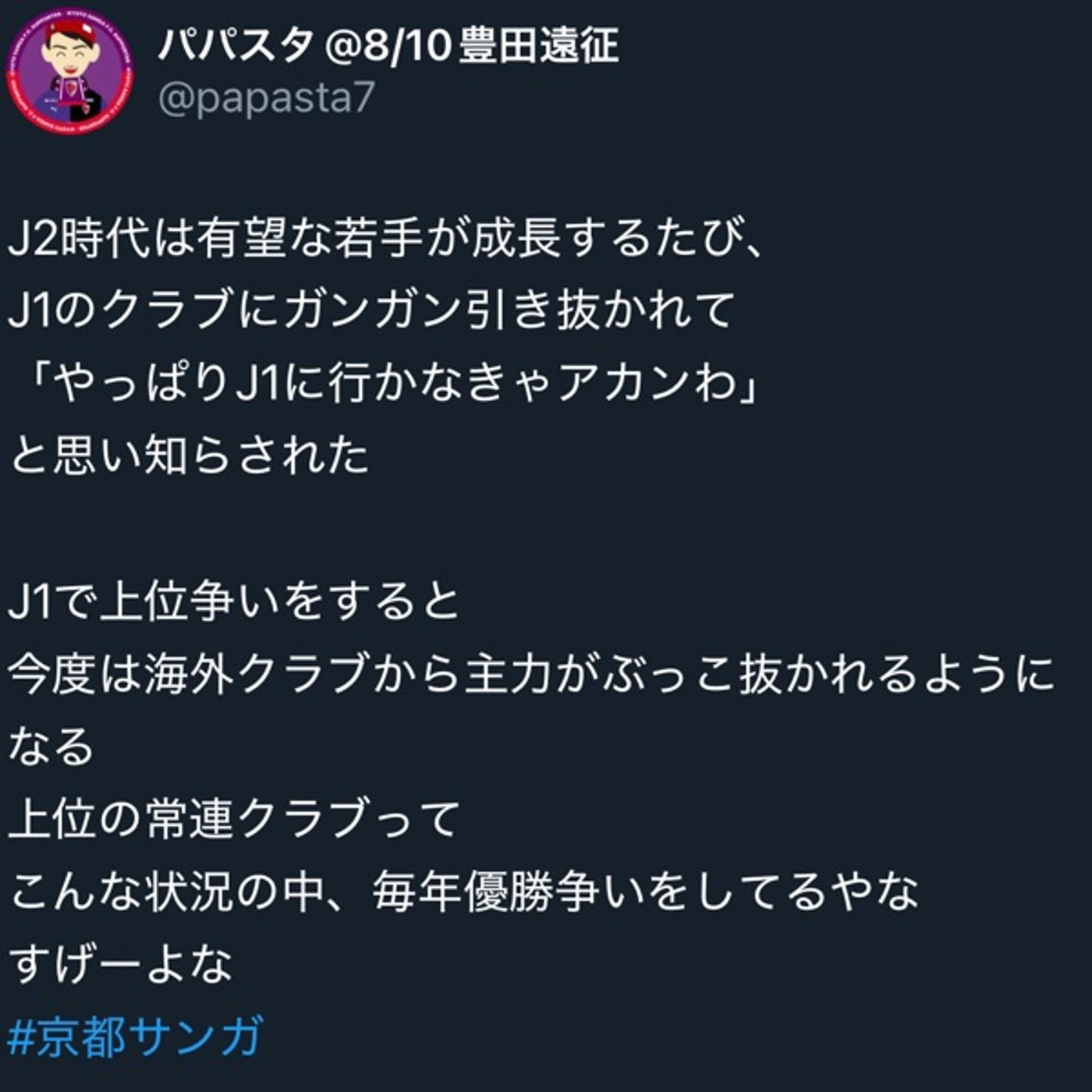 J2時代はJ1クラブに若手有望株を引き抜かれ続け、念願のJ1で上位争いをすれば今度は海外クラブからのオファーラッシュ。買い取りオプション付きレンタル移籍という海外クラブに都合の良いシステムに翻弄されるサポーターの本音を赤裸々に告白。