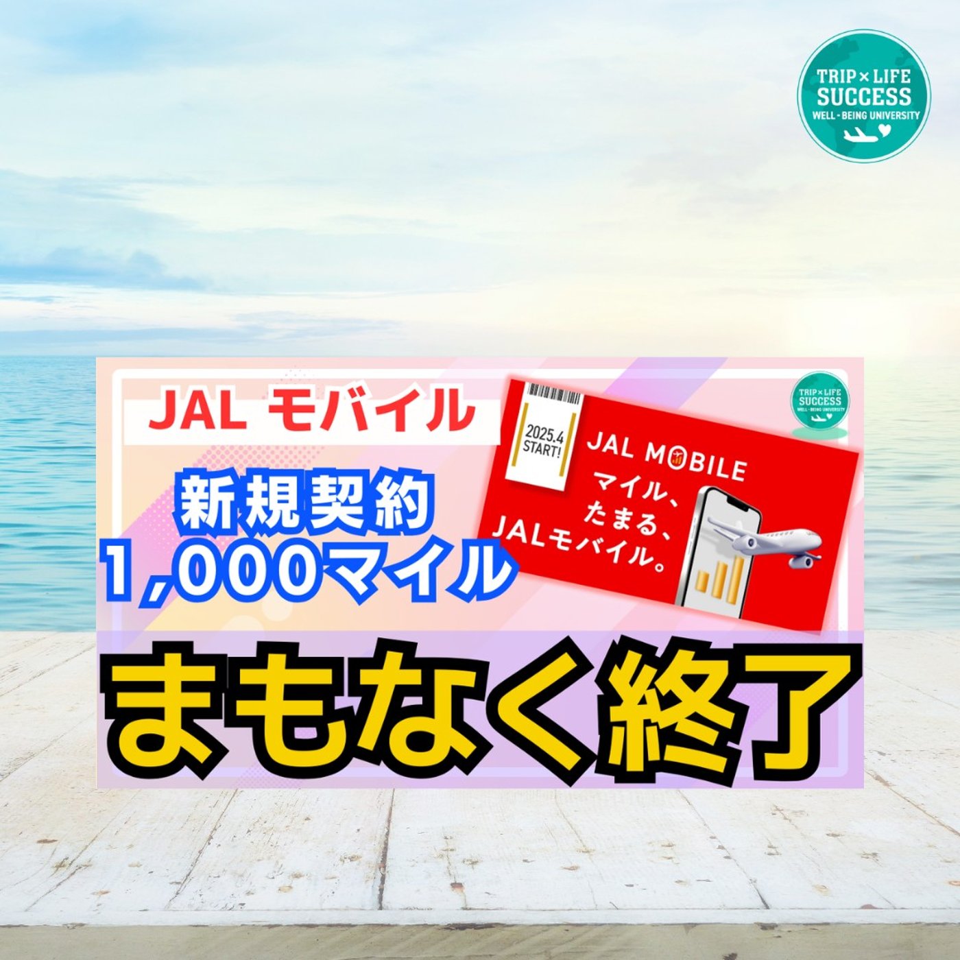 【マイルが貯まる!】JALモバイル キャンペーン まもなく終了 1,000マイルを今すぐゲット!JGC修行 JAL修行 マイル修行 LSP 航空券 回数修行 ANA