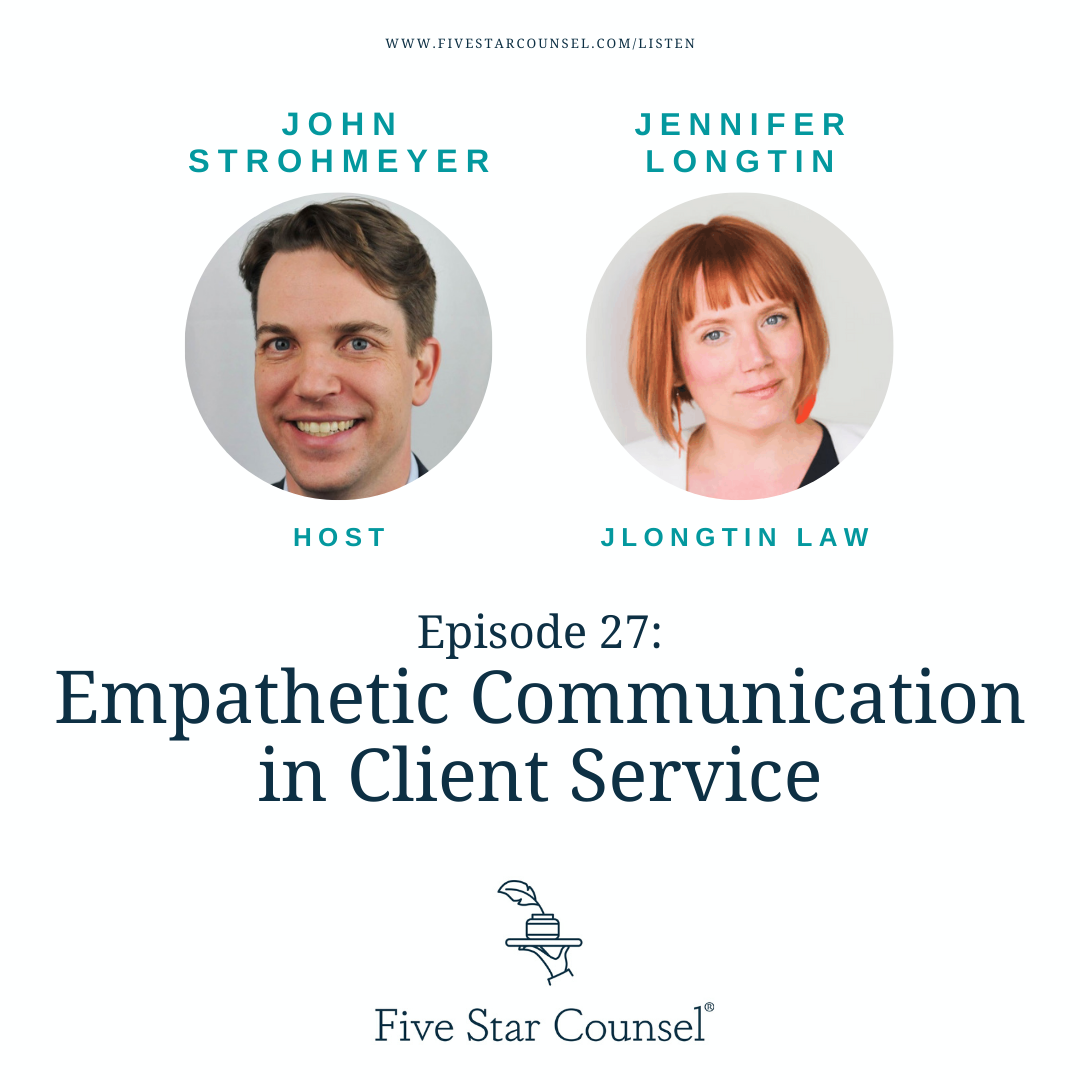 Our guest, criminal defense attorney Jennifer Longtin, shares some insightful lessons learned from dealing with clients with mental, physical, and psychiatric issues. The attention and care she uses to communicate with and empower clients that need extra attention should be the same standard we use for all clients. It's a powerful way to rethink our everyday interactions with the people we serve.
