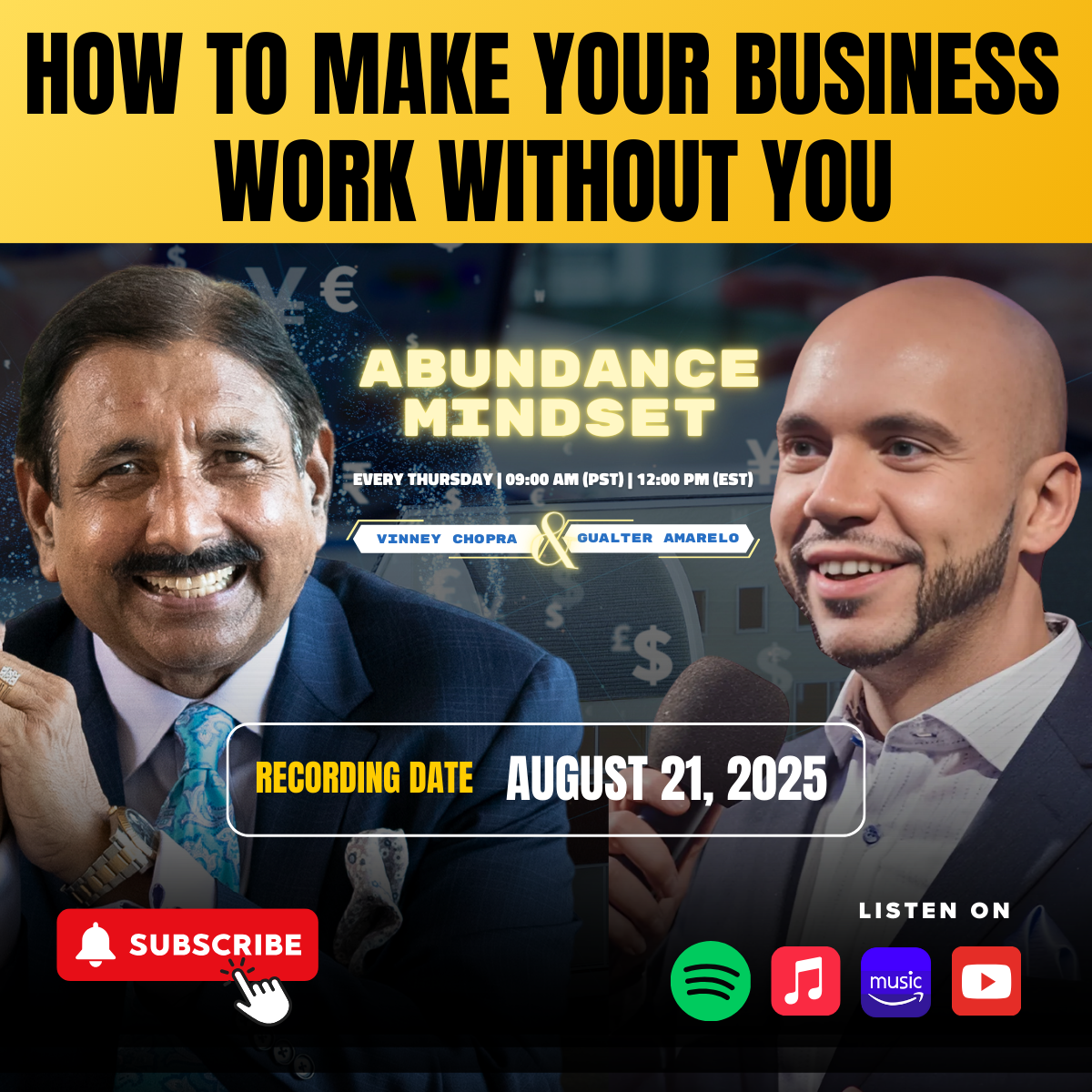 π₯ Tune into this week's episode of The Abundance Mindset with Vinney (Smile) Chopra & Gualter Amarelo to learn how to systemize and scale your success.