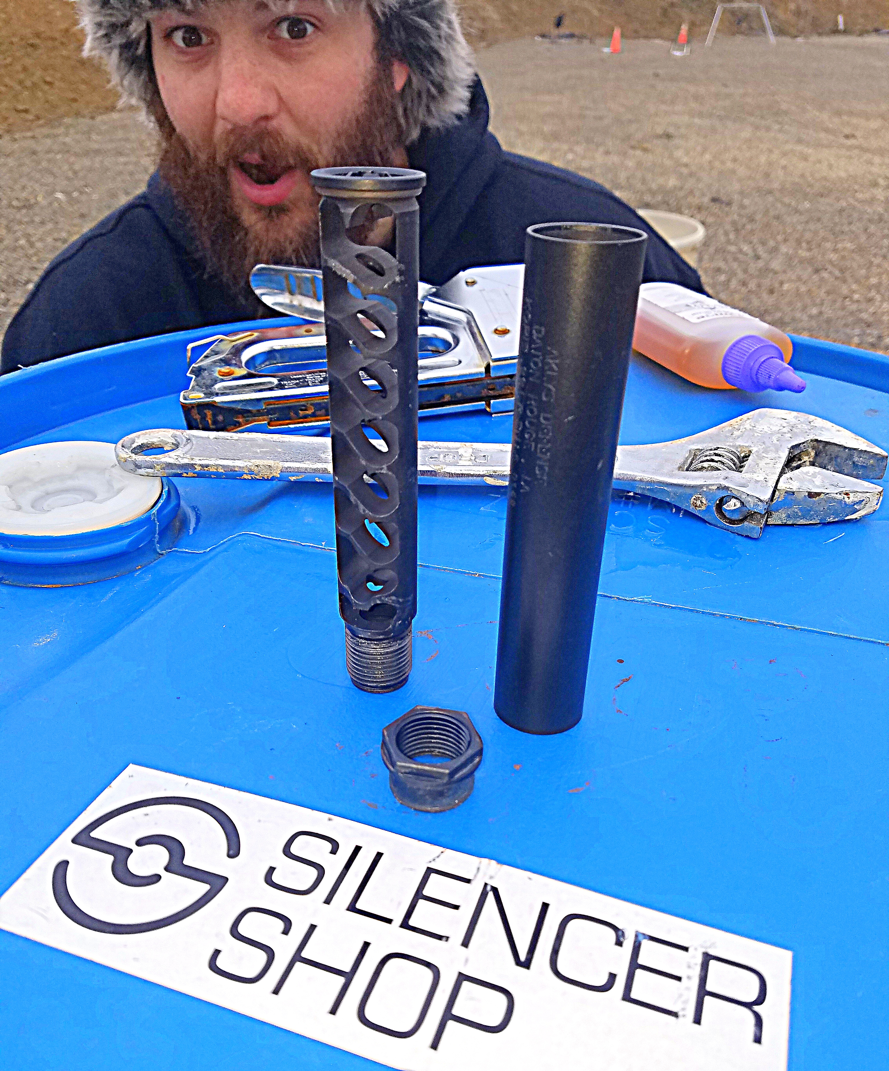 The Mono-core Pilum is manufactured from 7075 aerospace aluminum that has been fully Mil-Spec Type III Hard Coat anodized. It's design uses a 3 piece user serviceable system for ease of cleaning and requires NO special tools for disassembly and weighs in at only 8.9 Oz. The Pilum is Full-Auto rated for all 9mm or smaller diameter handgun cartridges. The Pilum suppressor is also rated to handle .38 Special, .357 magnum, .357sig and subsonic 300BLK.