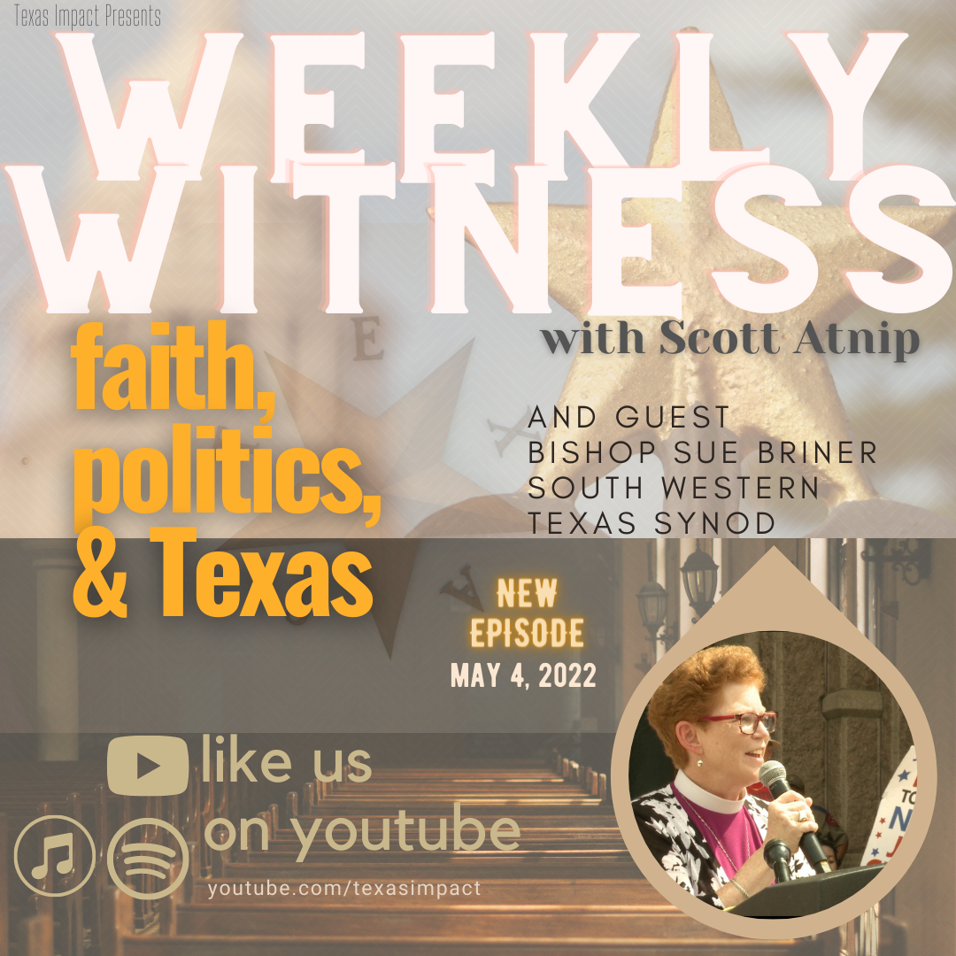 On this week's episode we speak with Bishop Sue Briner of the Southwestern Texas Synod. Bishop Briner recently met with migrant families in Washington, D.C., after they were bused from the Texas border to the nation's capital as part of Gov Abbott's border security protest. Later in the show Scott talks with Texas Impact staffers Bobby Watson and Isa Peterson, who just spent a couple of days at the Texas/Mexico border with our Courts and Ports program. On this week's Watch List, Josh talks about racial disparities in voter turnout. Our Weekly Word comes from our good friend Reverend Dan DeLeon, Senior Pastor at Friends Congregational Church in College Station.