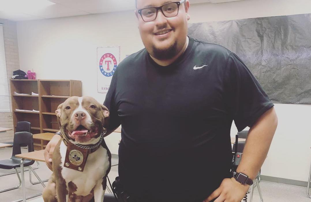 We grant funds to Sector K9, a dog training facility in Texas. Wes Keeling and his team train former shelter dogs as drug and gun detection dogs. Some dogs are work in their general community, but others, like K9 Coco, work in schools to address the issue of kids using illegal drugs.