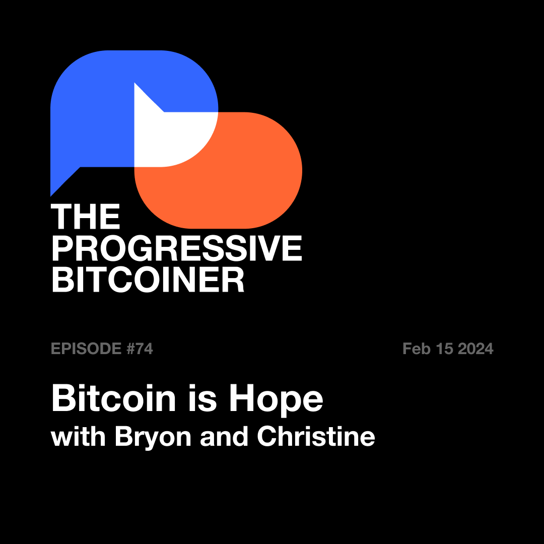 We have a special bonus episode this week! My guests today are Bryon and Christine. Bryon and Christine are both educators from the midwest, have been in the Bitcoin space for quite a while and have been leading the way in many regards from the progressive bitcoin side. Both being lifelong progressives and democrats, they speak to Bitcoin’s progressive values and why democrats, and the democratic party, should adopt bitcoin and why bitcoin is hope, what it can do for the working class, for refugees, and how political parties and typical solutions have left too many Americans behind. You will feel the midwest charm and warmth in this episode from Bryon and Christine, and we hope the everyday, average person can really resonate with this episode. As Bryon says, “we’re just people,” and they have countless examples of what Bitcoin has done for them, and many others.