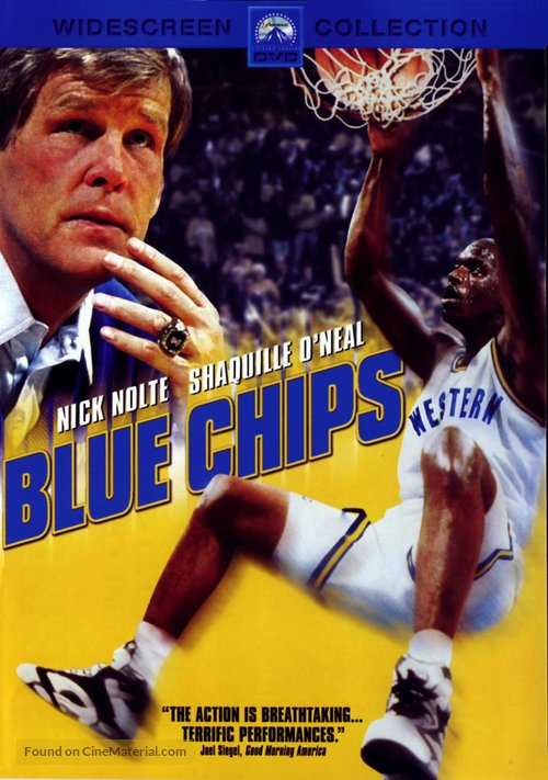 Blue Chips is the story of Pete Bell (Nick Nolte), a once-successful college basketball coach who has decided to compromise his integrity and break the rules in order to recruit three blue chip prospects for one last shot at glory. This movie also marks the acting debut of Shaquille O'Neal and features Penny Hardaway, Bobby Knight, Rick Pitino, Larry Bird, and many more notable basketball figures from the 90's.