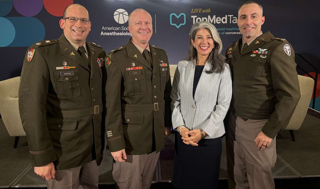 Desiree Chappell and Lieutenant Colonel Daniel P. Raboin, MD, PharmD, U.S. Army anesthesiologist and pharmacist who serves as the Deputy Anesthesiology Consultant to the Army Surgeon General, Lieutenant Colonel Jordan Lane, MD, U.S. Army anesthesiologist at Tripler Army Medical Center in Hawaii and Colonel Michael S. Patzkowski, MD, MHA, Army Anesthesiology Consultant to the Surgeon General.