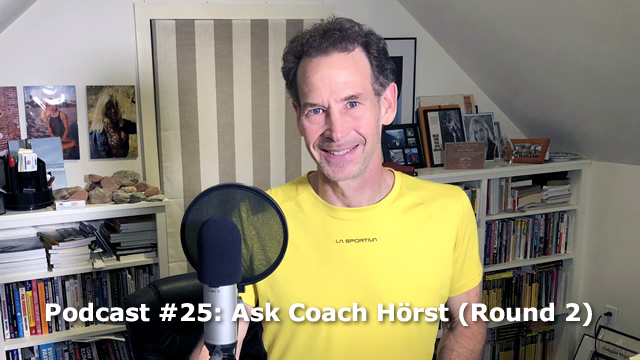NOTE: I'll record the next episode of Ask Coach Horst in late July for release in early August. If you'd like to submit a question for the next, please leave it as a comment to the Ask Coach Horst post on my Twitter @Train4Climbing -- include your first name, location, and years climbing.