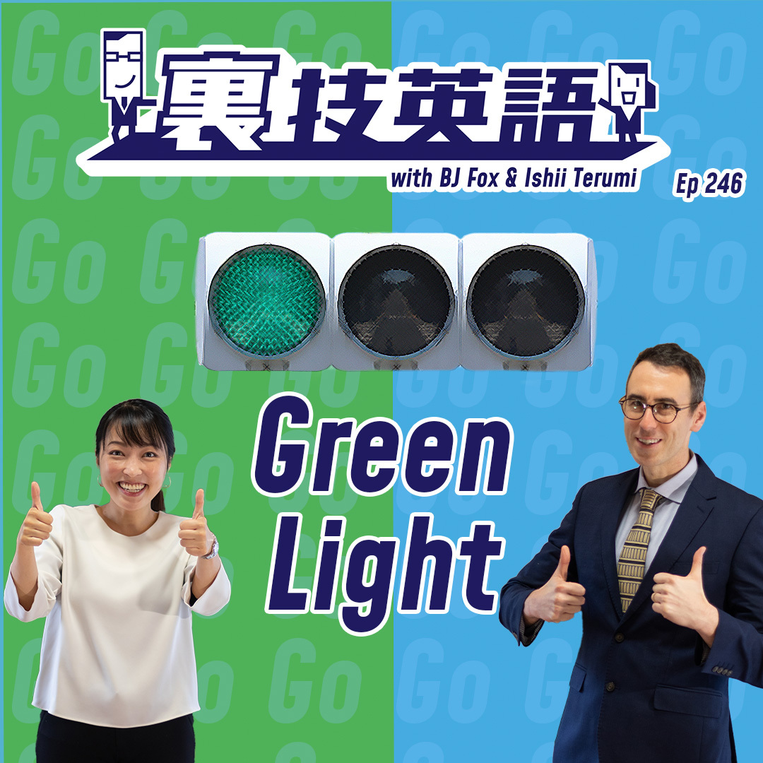色が登場するフレーズをフィーチャー!今週取り上げるのは"Green light"。よく「ゴーサインが出た」と言いますが、ゴーサインは和製英語で、英語で言うなら"Get the green light"、もしくは"Get the go-ahead"と言いましょう!"Gettting approval"とちがってカジュアルなシーンでも使えます。ちなみに、"Green light"という表現は信号機の青信号から来ていますが、黄色信号の英語圏での呼び方がBJとRubenで違うことが判明します!