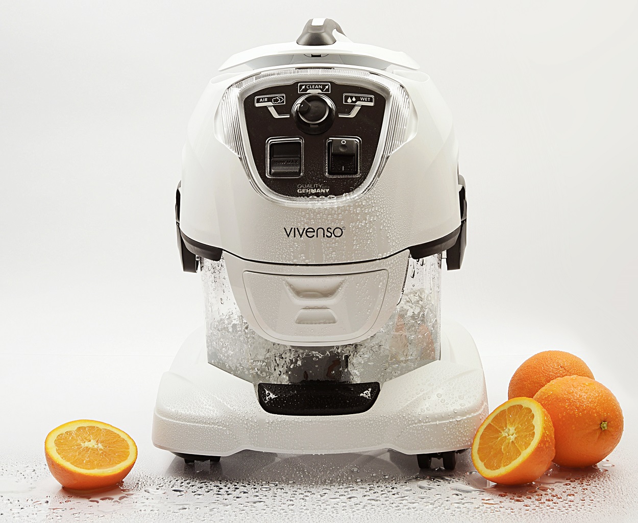 Der Vivenso Wasserstaubsauger und Luftreiniger bindet den aufgesaugten Schmutz nicht wie herkömmliche Staubsauger in einer Filtertüte, einem Beutel oder Staubbehälter, sondern durch einen patentierten zweistufigen Separator, in einem Wassertank. Dadurch werden die Staubpartikel wirksam gebunden und die aus dem Wasserstaubsauger austretende Luft ist wie nach einem Regenschauer immer spürbar frisch. Bei jedem Arbeitsgang wird auch gleichzeitig die Raumluft „gewaschen“ und Sie werden schon nach kürzester Zeit ein spürbar besseres und angenehmeres Raumklima feststellen.