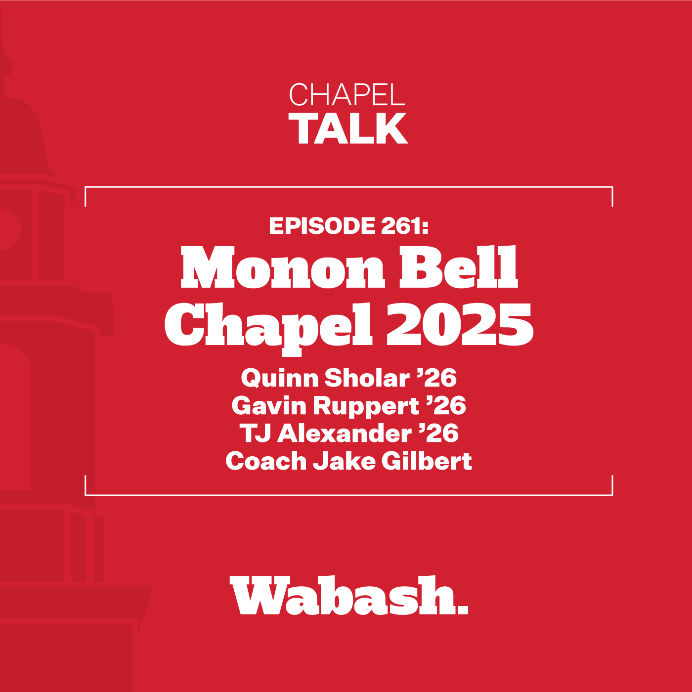 Speaking in Pioneer Chapel are 2025 captains of the Little Giant Football Team Quinn Sholar '26, Gavin Ruppert '26, and TJ Alexander '26, followed up by Head Coach Jake Gilbert, for the annual Monon Bell Chapel.