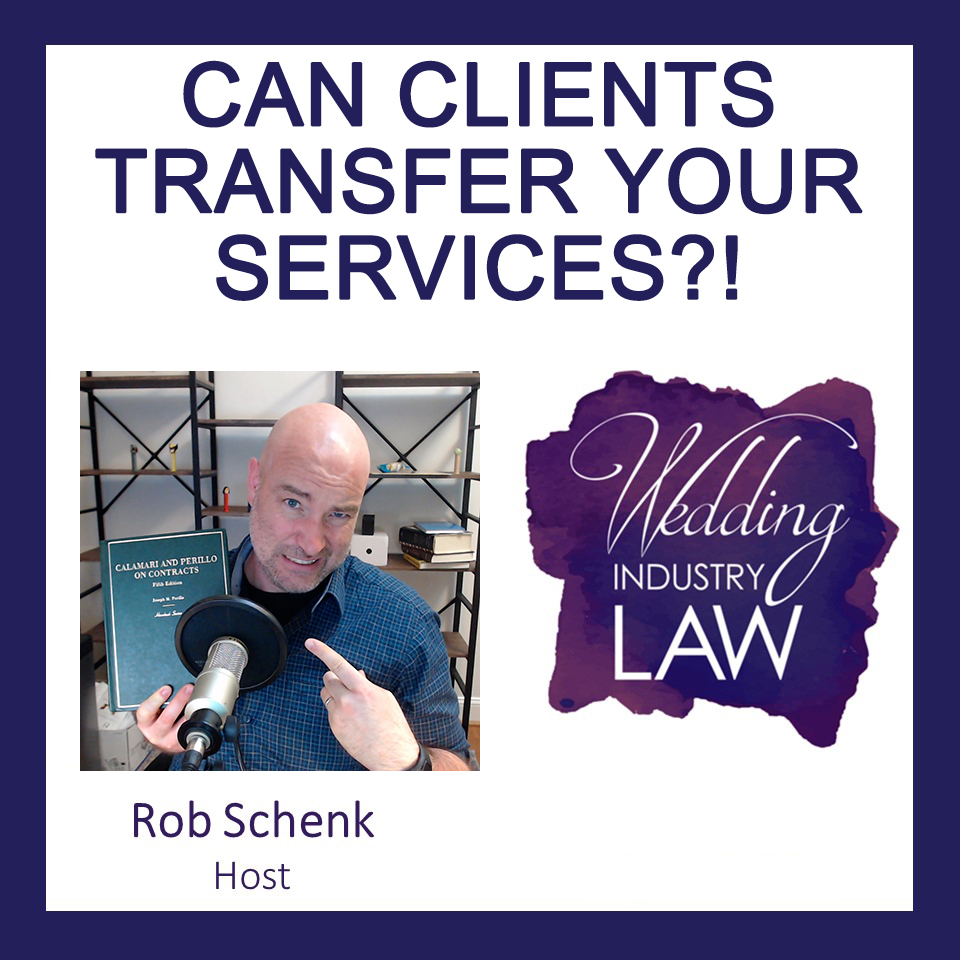 🤷🏻♀️ In the age of Covid, anything is possible. For real. Recently, a wedding professional told me that she had discovered her contract for sell online. That's right, the couple, rather than fess up that they wanted to back out, decided to put all the vendors that they had hired up for sell on a social media marketplace. Here's the kicker→ FOR A PROFIT. But, is this legal? Can our clients simply have some other couple step into their place? In this week's episode, we talk all about about the transferability of a client contract.