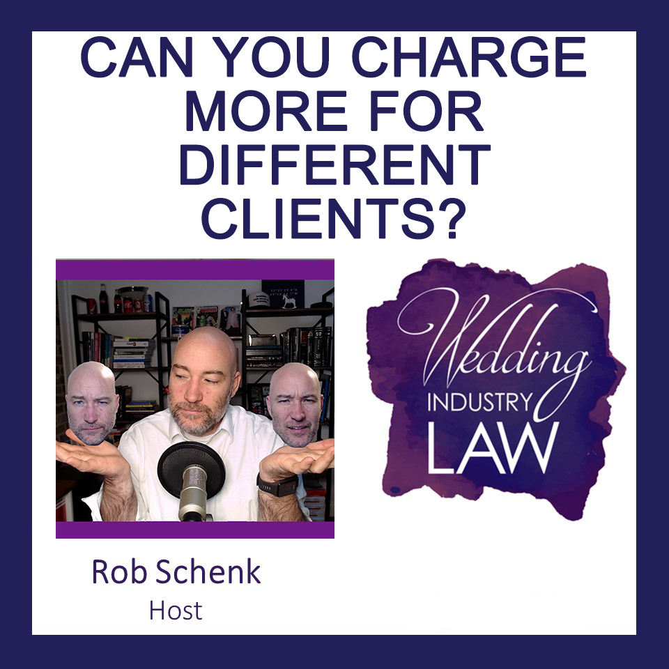 🤷🏻♀️ Can you charge a potential client more than another potential client for the SAME DATE (all other things being equal?). Is that discrimination under the law? In this week's episode, we discuss this concept. Check it out!