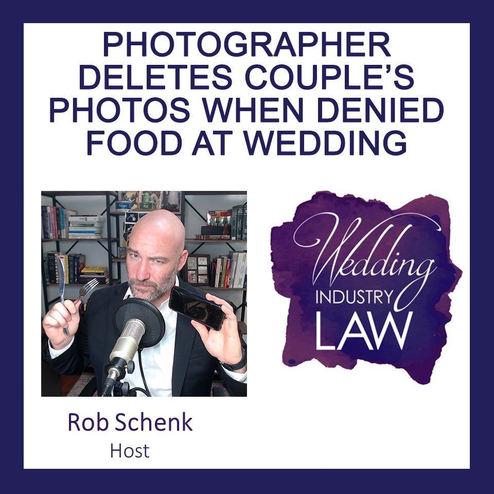 🤷🏻♀️ According to Reddit, a hungry wedding photographer bailed on a wedding because he was denied the chance to eat by the groom. Not only that, the photographer deleted the photos in front of the couple before bouncing. In this week's video, we do a hot take on the legal issues involved in this ice cold photographer's behavior.