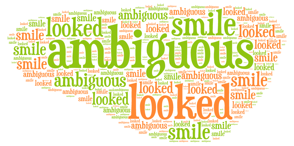 Geben Sie den einzelnen Buchstaben ruhig verschiedene Farben und lassen Sie die Wippe etwas quietschen, damit Ihr Gehörsinn nicht zu kurz kommt. Und sagen Sie jetzt noch einmal den Beispielsatz: He looked at her with an ambiguous smile.