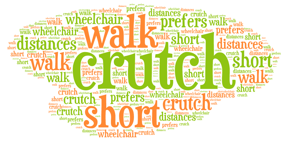 Sagen Sie jetzt noch einmal den Beispielsatz: He’s able to walk short distances with crutches but prefers his wheelchair.