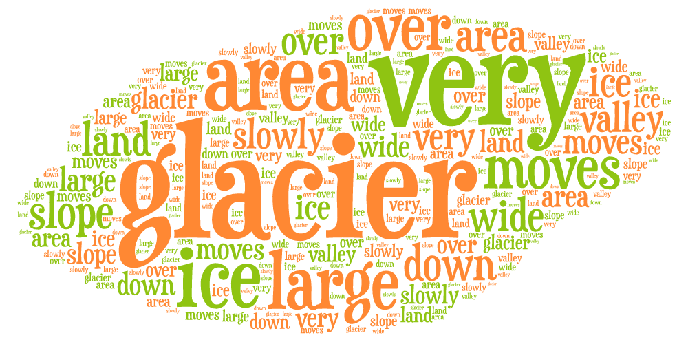Sagen Sie jetzt noch einmal den Beispielsatz: A glacier is a very large area of ice that moves slowly down a slope or valley or over a wide area of land.