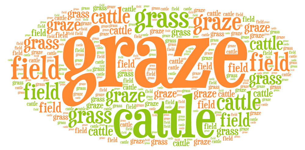 Stellen sie sich vor, wie auf jedem einzelnen Grashalm das englische Wort grass steht. Und während das Vieh beim grasen das Maul auf und zu macht, sehen Sie den Buchstaben Z auf der Zunge der Rinder.