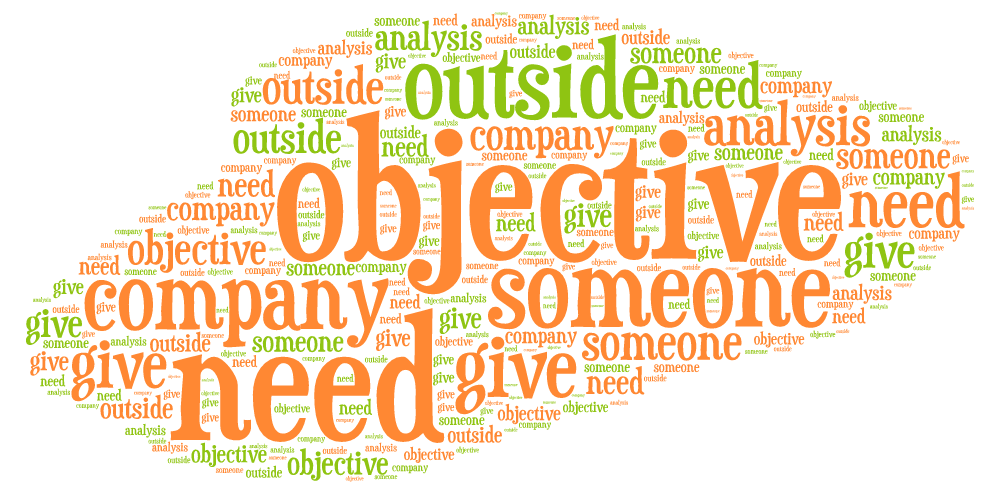Sagen Sie jetzt noch einmal den Beispielsatz: We need someone outside the company to give us an objective analysis.