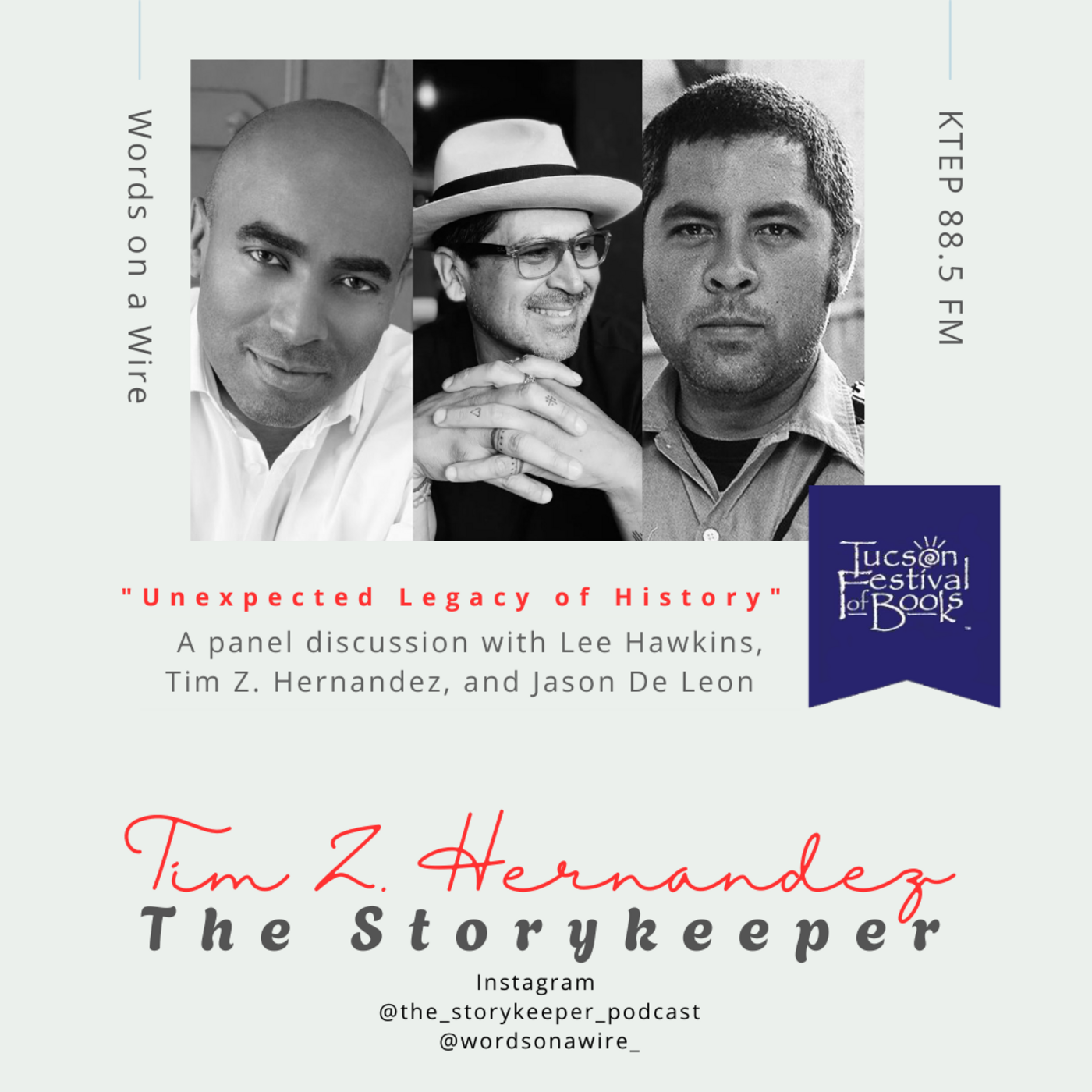 This week, our host Tim Z. Hernandez shares a live recording of a panel he was recently on at the Tucson Festival of Books, which took place March 15 & 16. The panel was titled "Unexpected Legacy of History," and features a conversation between Jason De Leon, Lee Hawkins, Tim Z. Hernandez, and moderator, Jill Jordan Spitz.