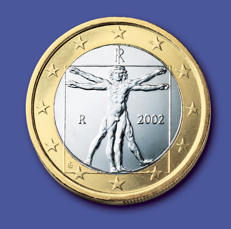 Una curiosità: nel 2002, l’immagine dell’Uomo vitruviano di Leonardo venne scelta da Carlo Azeglio Ciampi, all’epoca Ministro dell’Economia, per comparire sul dritto della moneta italiana da 1 euro (il design della moneta si deve invece a Laura Cretara). Questo ha certamente contribuito a far sì che questo mirabile studio di Leonardo sia diventato uno dei disegni rinascimentali più popolari in Italia e in Europa.
