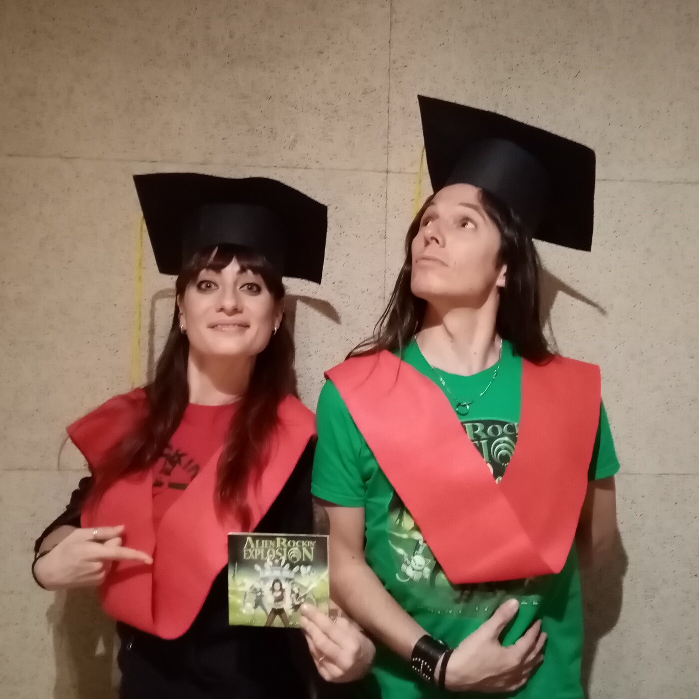 Noche de otros mundos, con la llegada al estudio de Alien Rockin’ Explosion, que aparecen con su segundo disco, editado en el planeta terrícola, así de esta forma tan fulminante se presentan en nuestras instalaciones, Red-Trsysha cantante y Van Halien guitarrista & coros, de esta peculiar formación, que nos hablan de lo que fue su última obra musical, llamada “Paint it Green”, junto a todas sus obras de dibujo, que dejan plasmada la trayectoria de la formación, con un viaje increíble, entre cruceros y el pasto del Waken, algo que han logrado, por su esfuerzo y saber estar, dándolo todo por Rock.