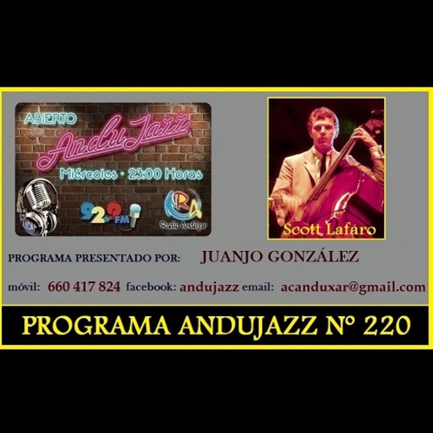 Programa nº 220 de ANDUJAZZ con Scott LaFaro nacido en Newark (Nueva Jersey), extraordinario contrabajista estadounidense de jazz que formaría parte del trío original de Bill Evans, presentado por Juanjo González (ANDUJAZZ)