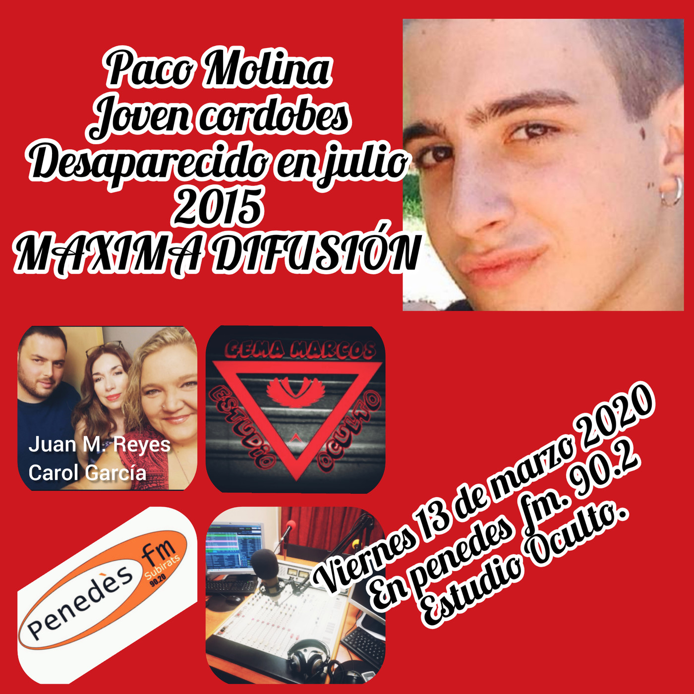 EN ESTA OCASIÓN CONTAMOS CON EL TESTIMONIO DE ISIDRO MOLINA, PADRE DEL JOVEN CORDOBÉS DESAPARECIDO EN JULIO DE 2015 Y TAMBIÉN TENEMOS LA PRESENCIA DE PACO LOBATON, QUIEN TRABAJA CONJUNTAMENTE CON LAS FAMILIAS PARA QUE NO CAIGAN EN EL OLVIDO.