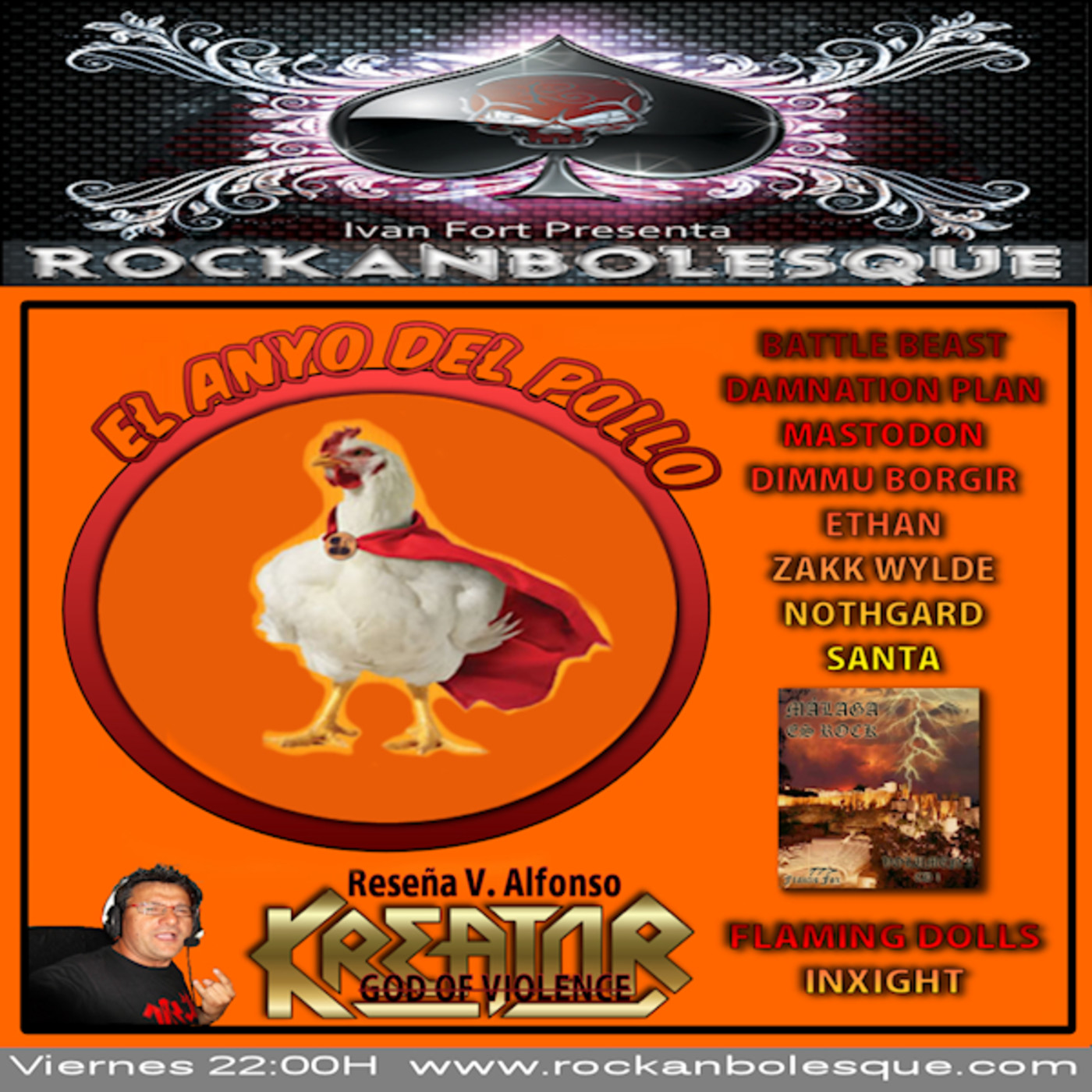 Ni la Panga, ni el gallo rojo, nosotros somos más de pollo, mañana te lo contamos en el programa...Rockanbolesque Radio Show "El anyo del pollo" con Ethan, Inxight, Flaming Dolls,Zakk Wylde, Battle Beast, Damnation Plan, la reseña de lo nuevo de Kreator de la mano del gran VicenteAlfonso Locutor, Damnation Plan, Mastodon, Northgad y Dimmu Borgir.