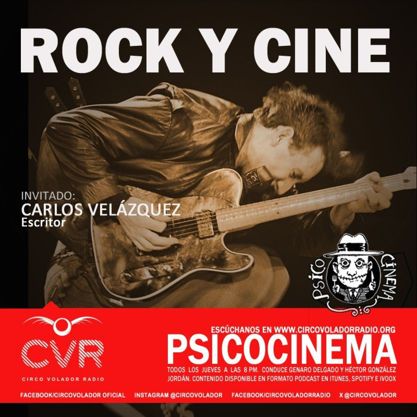 AQUÍ SU PSICOCINEMA QUE EN ESTA OCACION TUVIMOS DE INVITADO AL ESCRITOR CARLOS VELÁZQUEZ PARA HANBLAR DE ROCK Y CINE