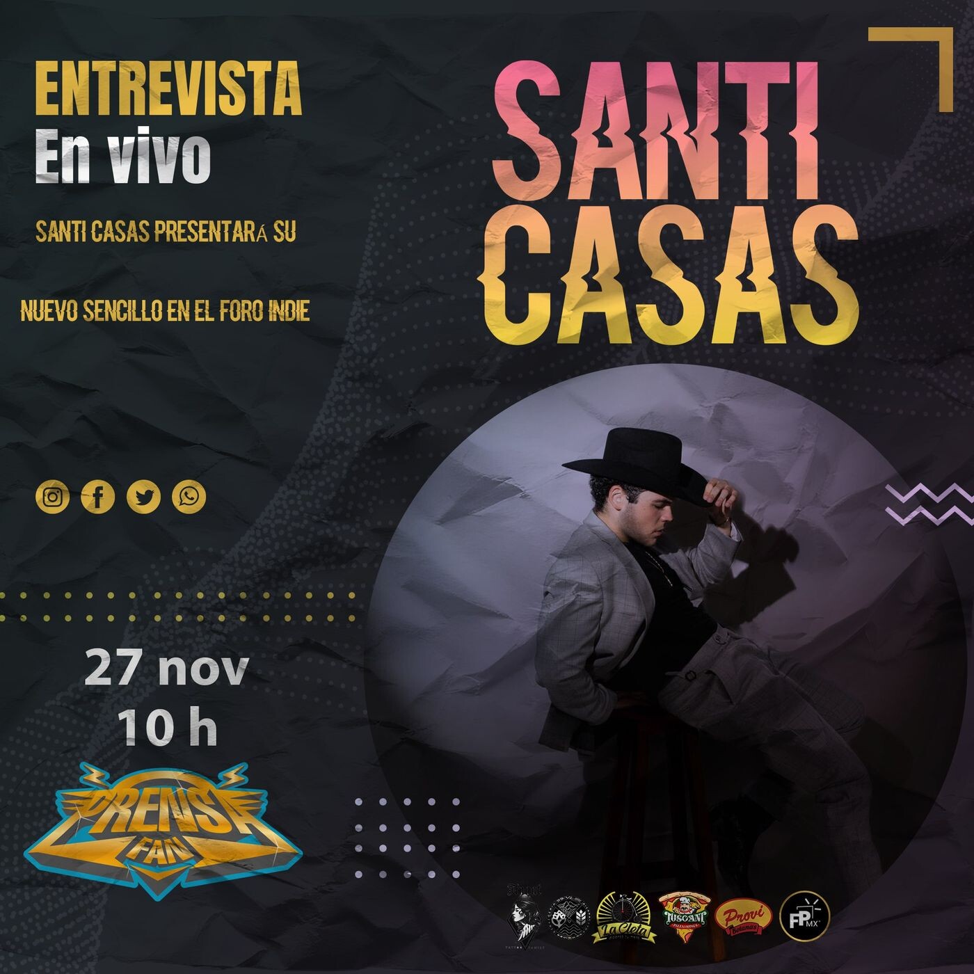 Santi Casas presentará su nuevo sencillo en el Foro Indie Rocks