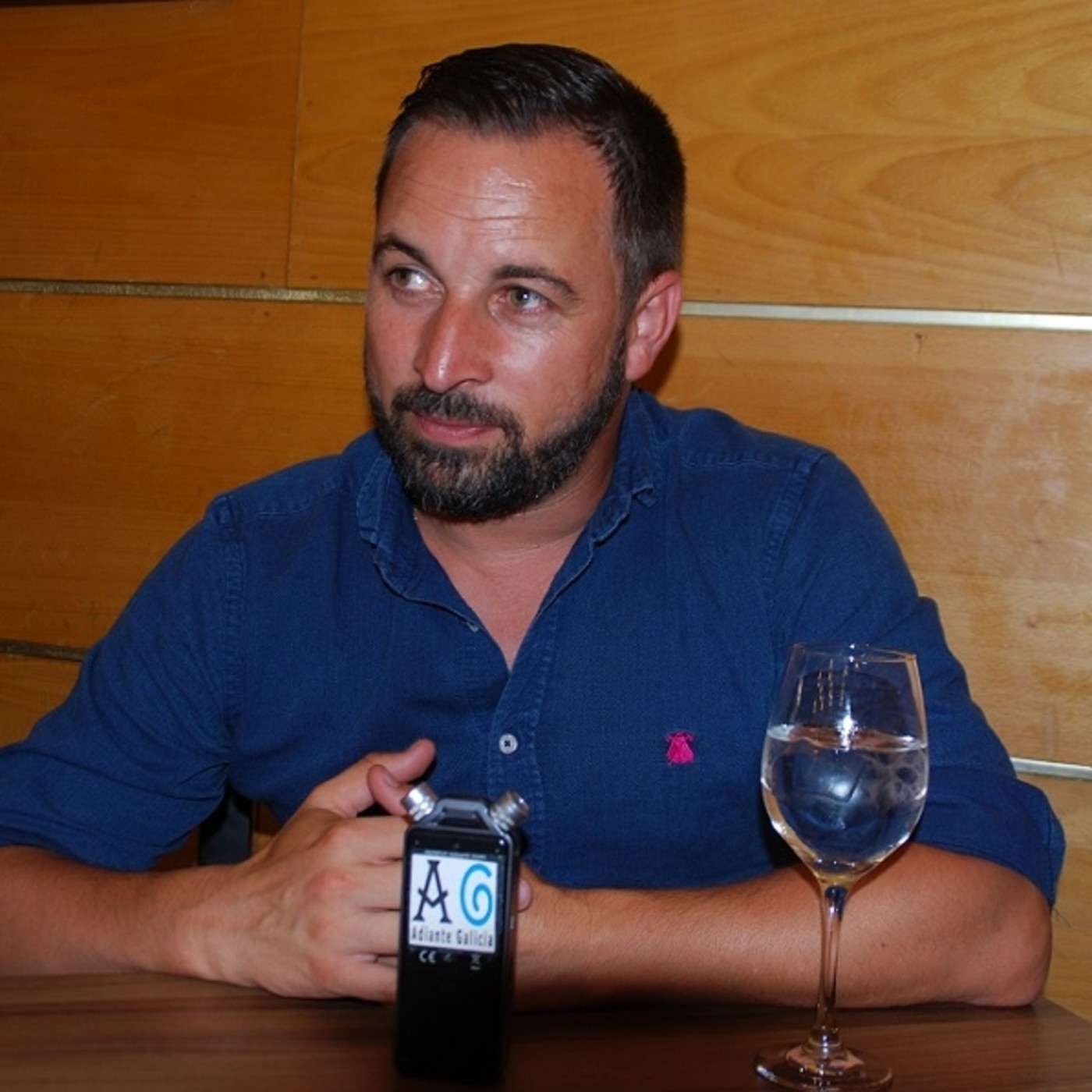 Entrevista al presidente nacional de Vox, Santiago Abascal durante su estancia en Santiago de Compostela este viernes 5 de agosto de 2016. Conversación con el director de Adiante, Xosé Manuel Lema.