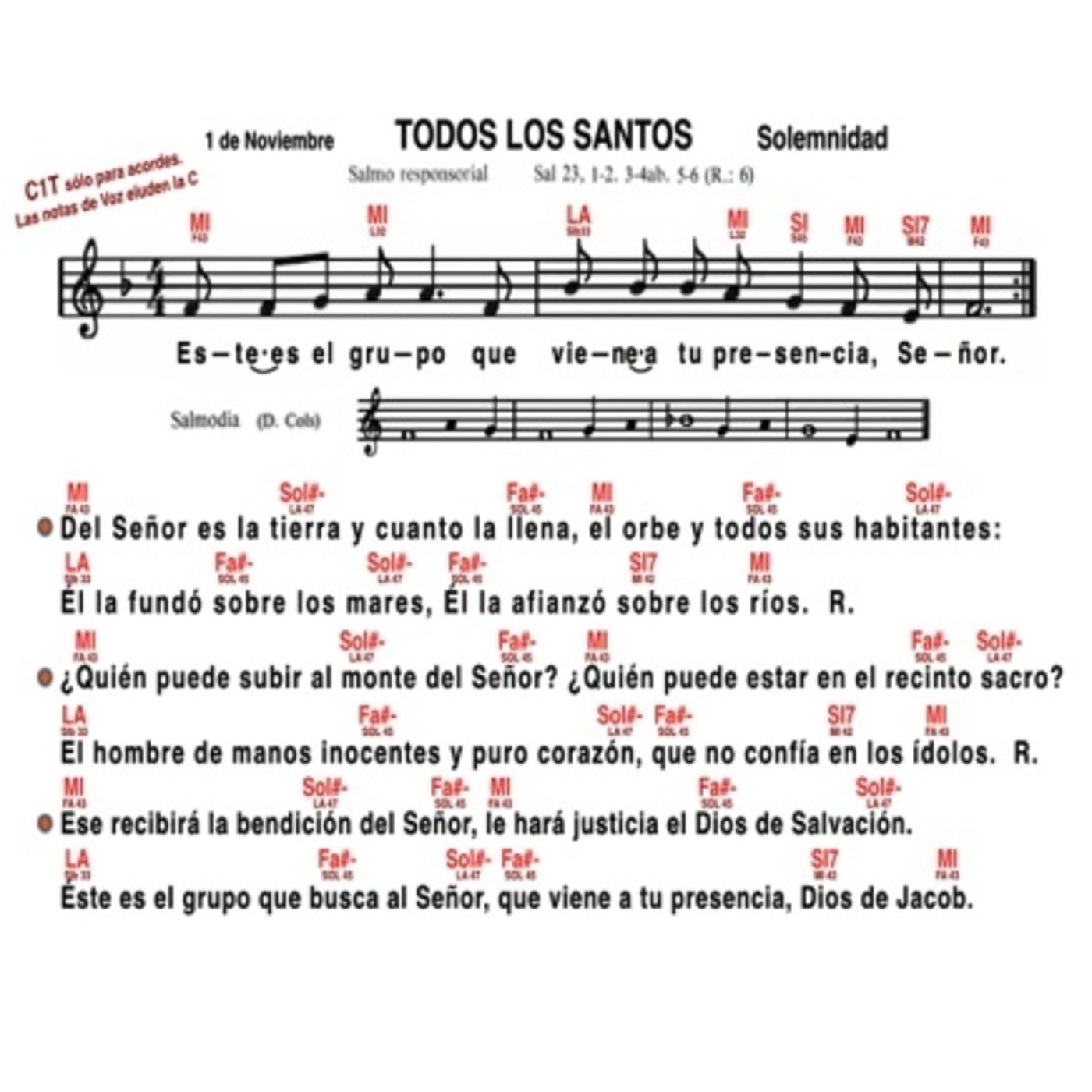 Salmos 23. Salmo Responsorial correspondiente a la Solemnidad de Todos los Santos. Cantado por Fco. Javier Bravo Párraga, según música y arreglos del Libro del Salmista.