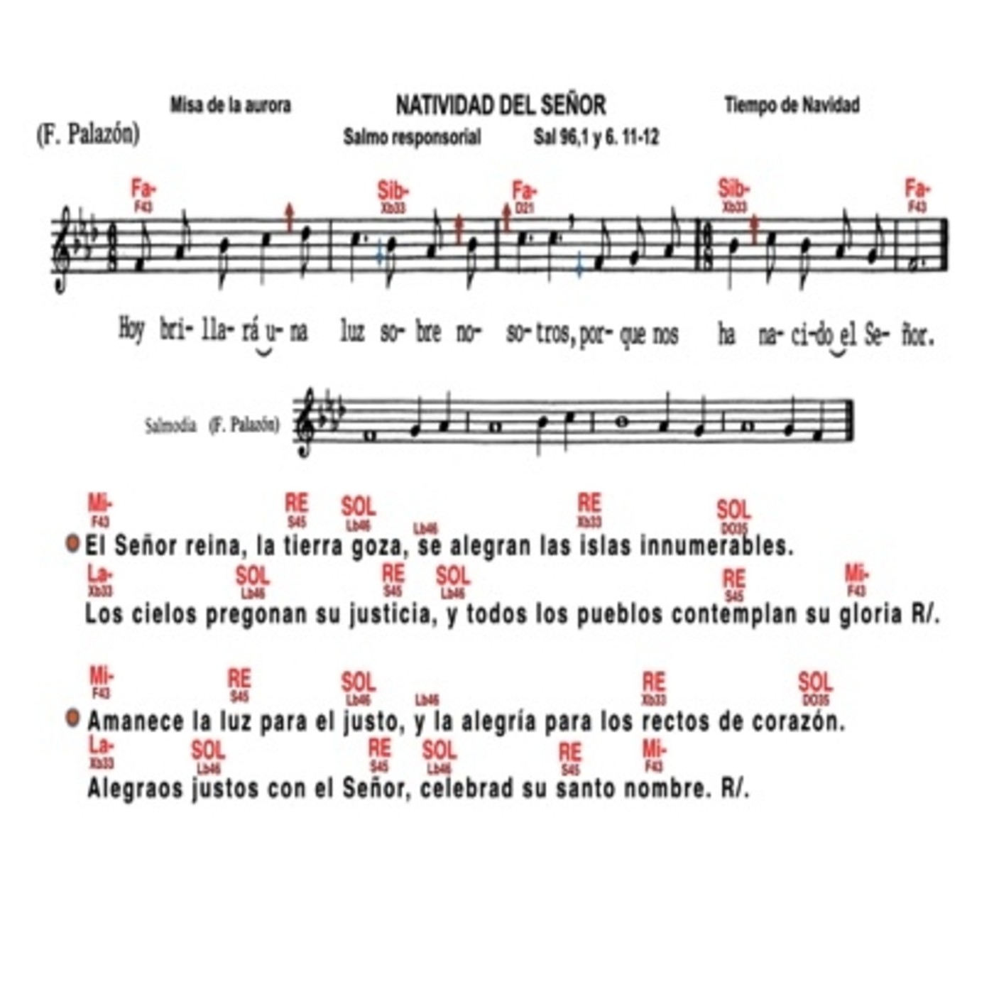 Salmos 96. Salmo Responsorial correspondiente a NAVIDAD, a la Misa de la Aurora