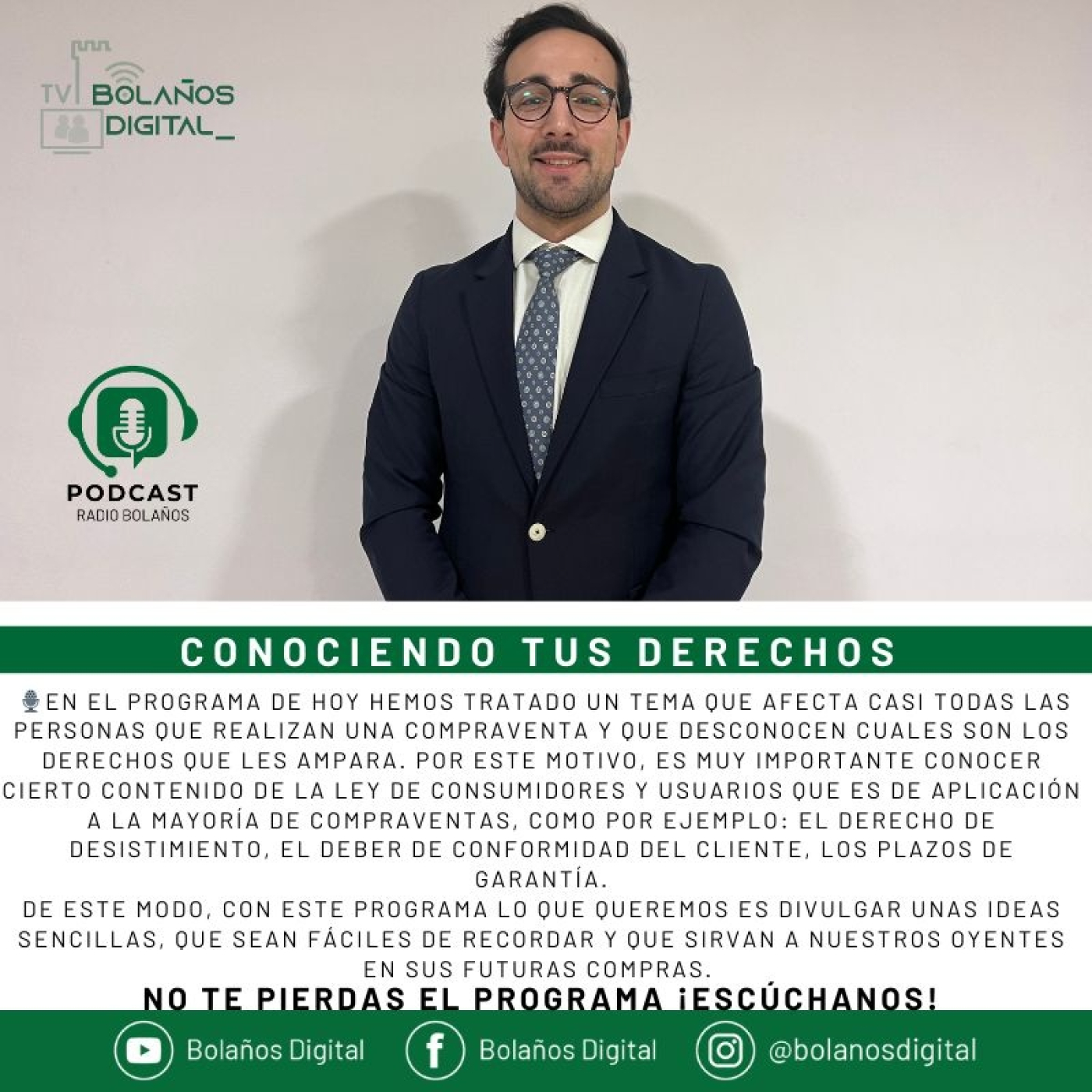 🎙️En el programa de hoy hemos tratado un tema que afecta casi todas las personas que realizan una compraventa y que desconocen cuales son los derechos que les ampara. Por este motivo, es muy importante conocer cierto contenido de la ley de consumidores y usuarios que es de aplicación a la mayoría de compraventas, como por ejemplo: el derecho de desistimiento, el deber de conformidad del cliente, los plazos de garantía.