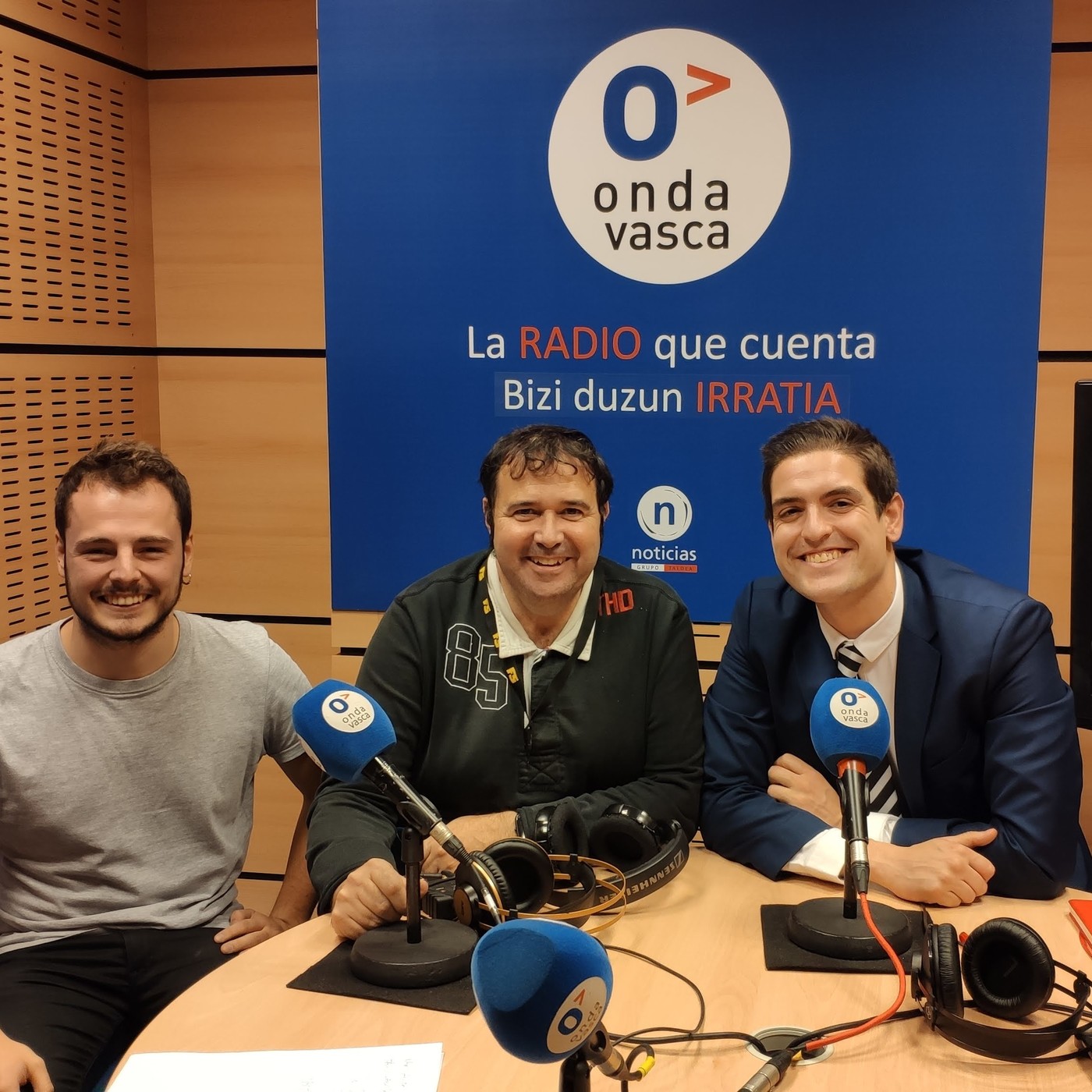 Juan de la Herrán charlando con dos empresas que emprenden de la mano de Sergio Gallastegui de CodeContract y con Iñaki Aguirre de WeBrain.