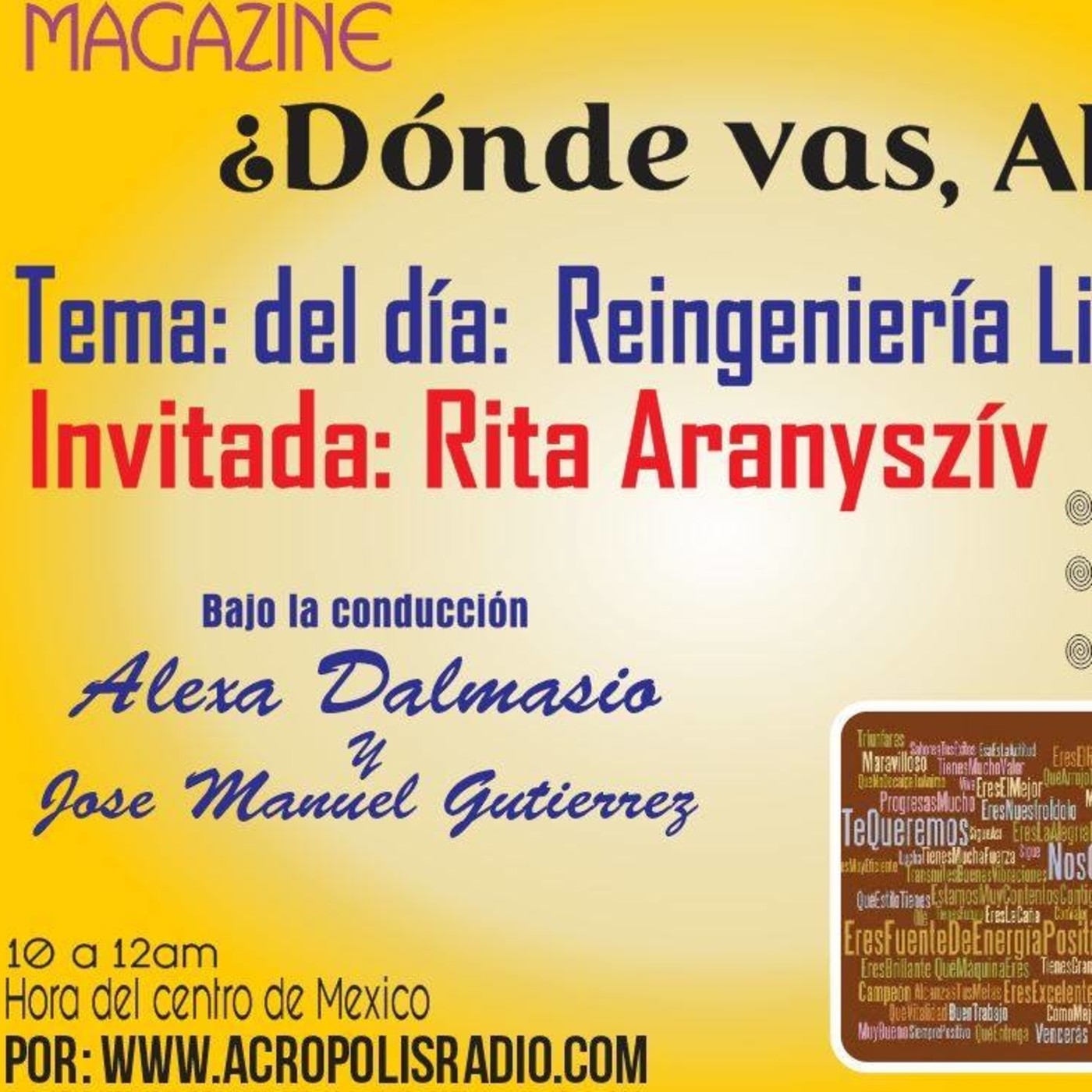 Magazine de actualidad, entrevista, música, coordinado y conducido por Alexa Dalmasio
