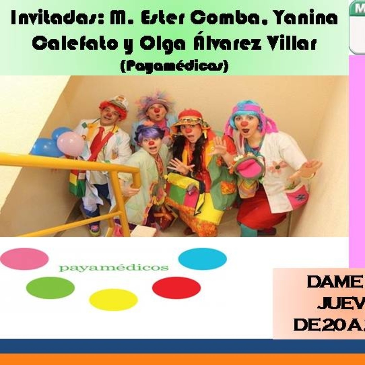 LOS PAYAMEDICOS: MULTIPLICANDO ALEGRIAS, PRODUCIENDO SALUD. Compartimos el espacio junto a María Ester Comba, y Olga Álvarez Villar