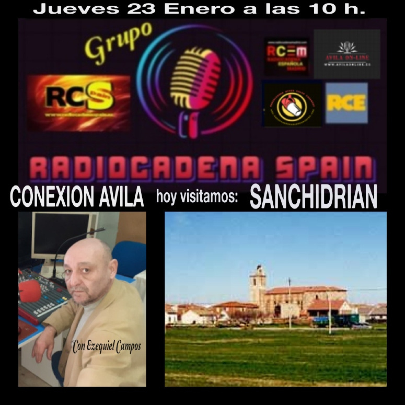 Audio de el programa 46 de "CONEXION AVILA" con Ezequiel Campos. Hoy visitamos la localidad de SANCHIDRIAN . Estamos en RADIOCADENA SPAIN www.radiocadenaspain.com , www.radiocadenaspain.info , www.radiocadenaspain.es ; AVILA ON-LINE www.avilaonline.es , www.avilaonline.com y https://avilaonline.webradiosite.com/ y RADIOCADENA SPAIN ISLAS CANARIAS (horario local Canarias) www.radiocadenaspaincanarias.com