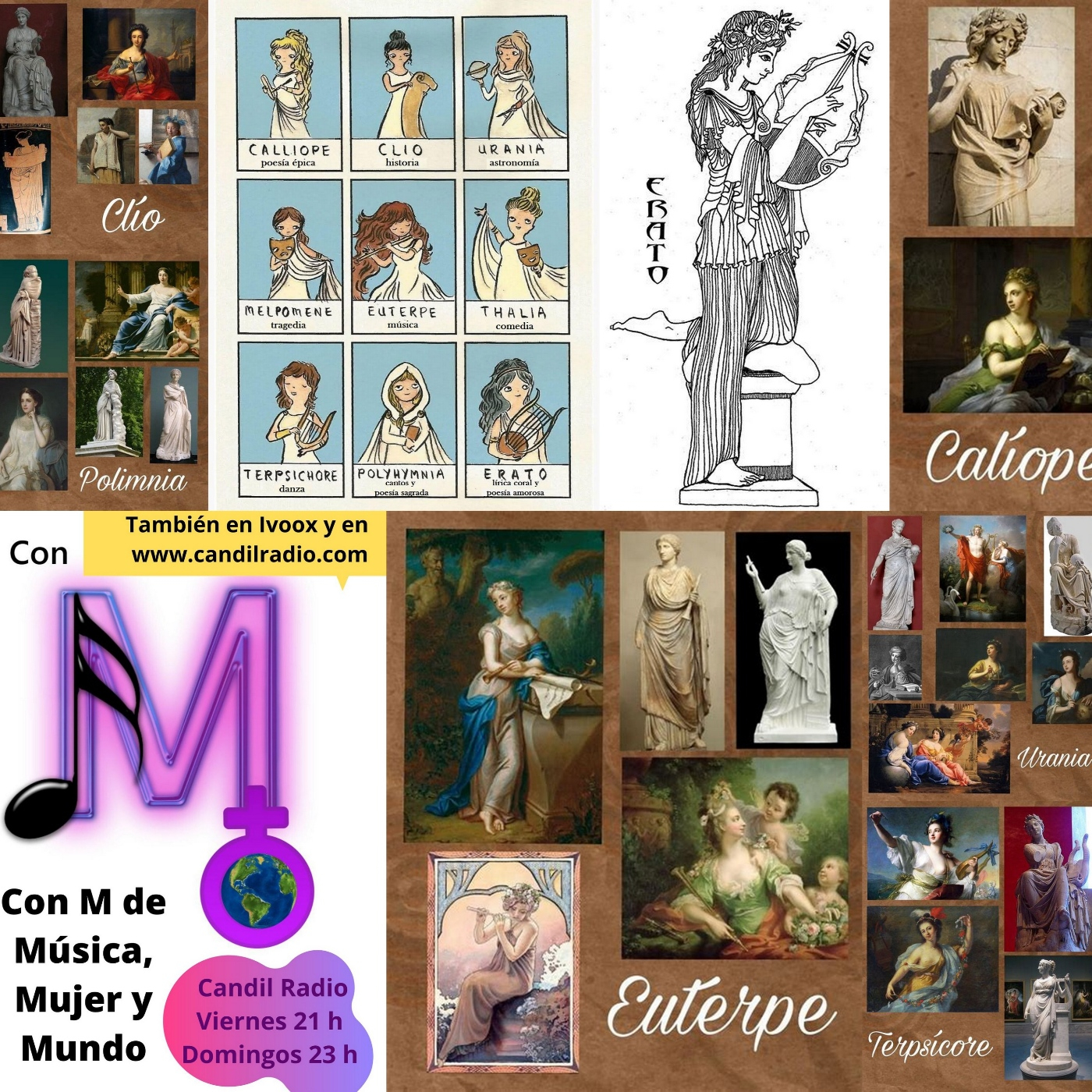 Hoy quiero dedicar nuestro tricentésimo vigésimo tercer programa a las Musas. En la mitología griega, las musas son diosas de las artes, y proclamadoras de héroes. Según los escritores más antiguos están relacionadas con una concepción filosófica acerca de la primacía de la música en el universo. Son las cantoras divinas, cuyos coros e himnos deleitan a Zeus y a otros dioses. Reconocidas por sus poderosas y melódicas voces, el primer canto que llevaron a cabo fue cuando cubrieron la victoria del Olimpo contra los Titanes.