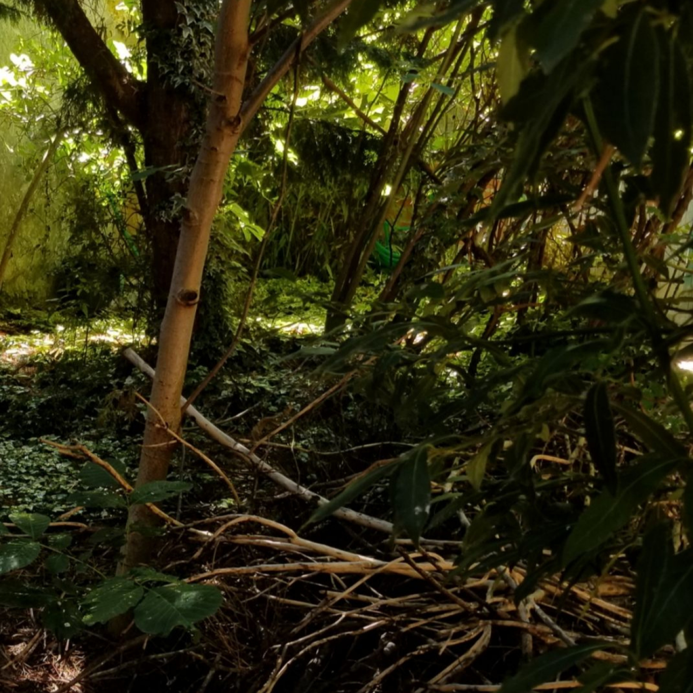 En la imagen, un encuadre de mi jardín «con árboles que forman espesura»