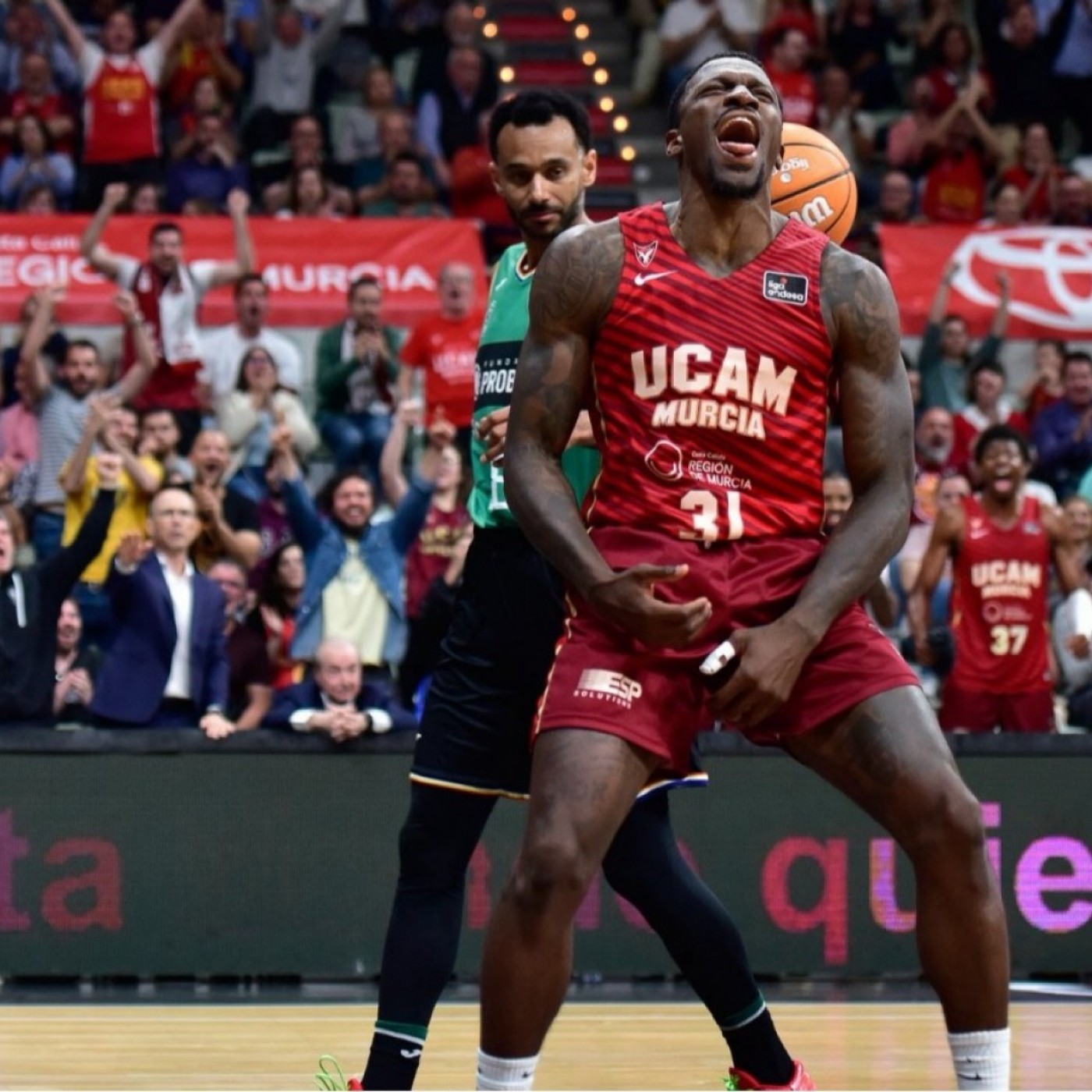 Tres meses después, el UCAM Murcia volvió a ganar en el Palacio de los Deportes. Lo hizo frente al Joventut, superándole también en el average, en el mejor partido de la temporada en casa. Destacaron Howard Sant-Roos y Dylan Ennis, sobre todo, pero todos los jugadores tuvieron su momento de protagonismo. Esta victoria hace que los de Sito Alonso sigan soñando con disputar el play off, ya que a falta de 6 jornadas para finalizar el campeonato, están solamente a un triunfo del octavo clasificado. Este domingo visitarán Bilbao sin Kaiser Gates, lesionado de la rodilla. Analizamos la actualidad del equipo en la tertulia con Emilio Sánchez-Bolea, Andrés Miso y Laura Fernández. En el repaso a la Liga Endesa, Chema de Lucas nos da las claves de la jornada y nos habla también del mercado.