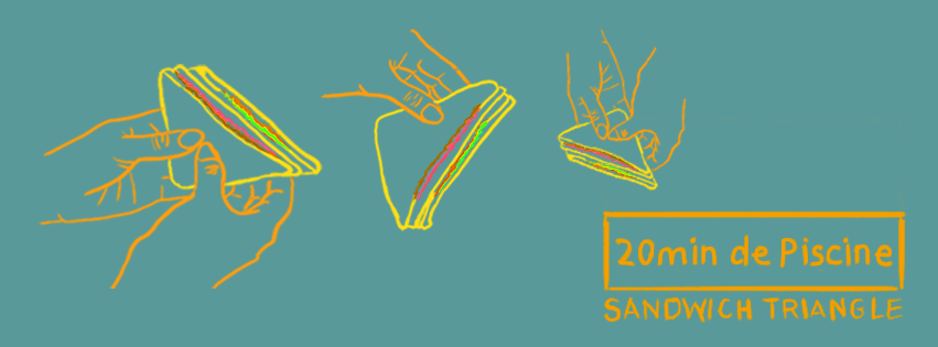 Revenons, si vous le voulez bien à 20 Minutes de Piscine. Ce n'est pas une blague mais un projet très sérieux, qui cache l'âme d'un être qui a déjà bien tourné sa bosse, sur les routes de Navarre et d'Europe, en effet très proche du Groovedge Posse, qui est aussi un disquaire, un label et un metteur en espace de farfadets électroniques lyonnais. Elle, car c'est d'un elle dont nous parlons, aime les ballades enchanteresses sur des radios comme Rinse ou LYL, quand il s'agit de distiller un peu d'EBM bien couillue, et des tonneaux de various acid bien abrasifs et expérimentaux. Car la délicatesse et le sens du mix de la demoiselle n'ont de cesse de vous cogner et vous plaquer aux sols en hadaka jime (je vous laisse le faire avec l'accent japonais hein !) pour ceux qui ont pu la croiser avec le collectif Club House, ou dans les divers endroits d'oiseaux de nuits entre Lyon, Paris et Porto. Oui, car je ne vous avais pas dit qu'elle a la morue facile, y comprendra ce que chacun voudra, avec le Portugal. Proche de G.A.M aka Fata Morgana aka Vand Collectiv, qu'on ne saurait attendre ici à Sandwich Triangle, mais chut ! Nous sommes encore en 2015, il y aurait même du rififi entre ces trois là, mais chut merde !