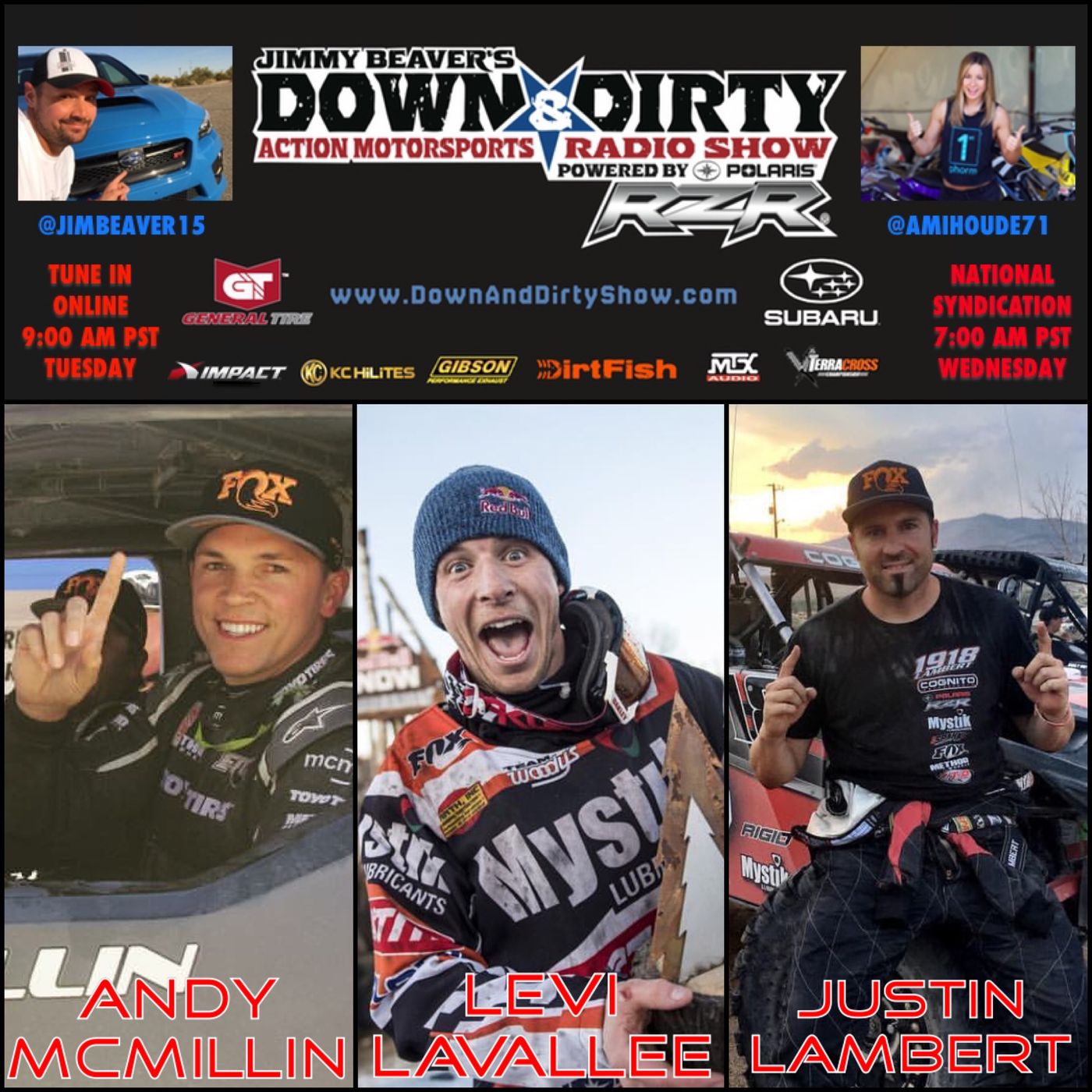 Jim Beaver and the Down & Dirty Radio Show Powered By Polaris RZR have another banger of a show lined up today with the best in action motorsports. On the line today we have Vegas to Reno champ Andy McMillin, Vegas to Reno UTV champ and factory Polaris RZR driver Justin Lambert, and the legend Levi LaVallee calling in. Throw in some Terracross talk with Joe Duncan and all the latest from the world of off-road and action motorsports and it’s going to be one you don’t want to miss. Game On!