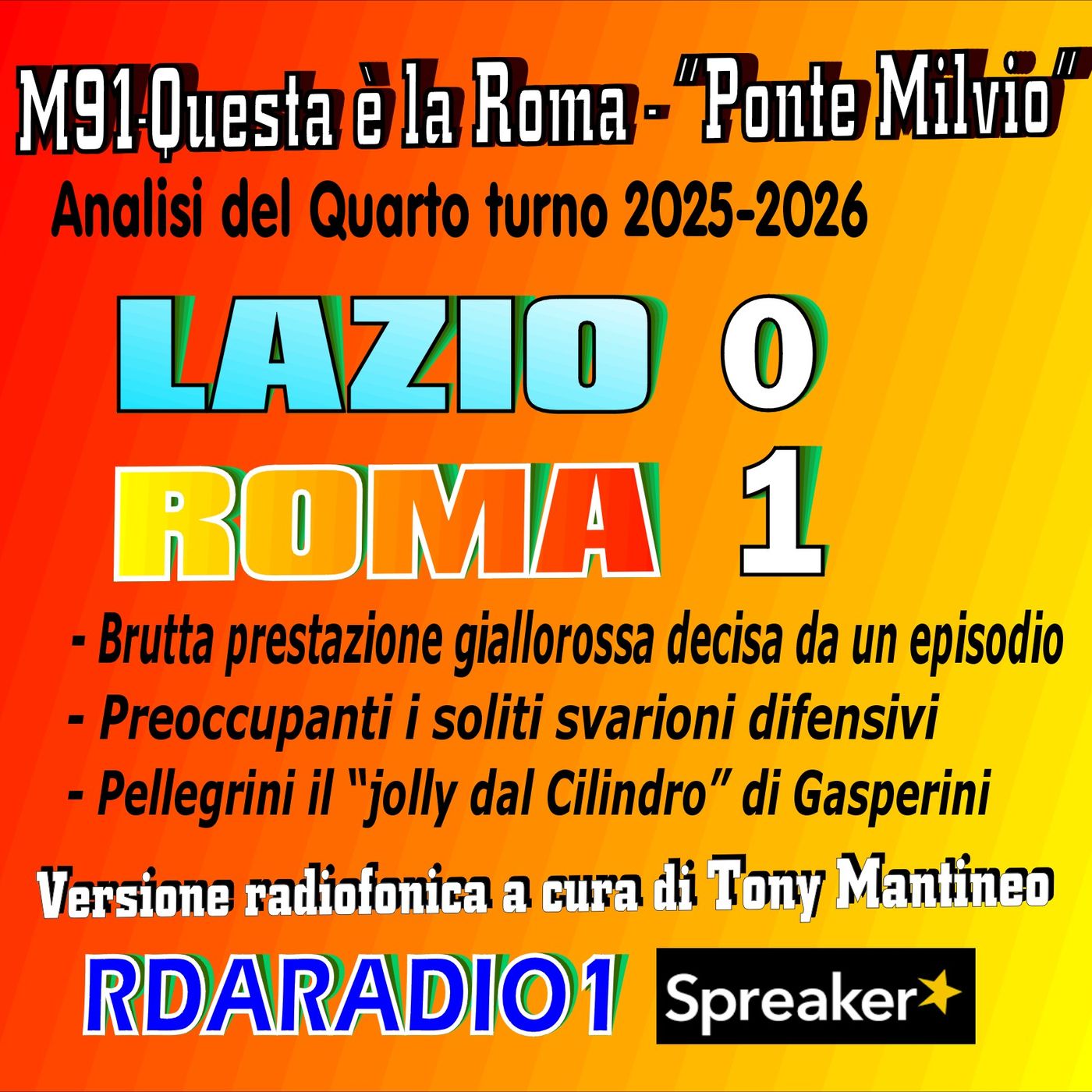 Analisi della partita di calcio Lazio Roma 0-1 per il quarto turno di campionato 2025-26 - a cura di Tony Mantineo