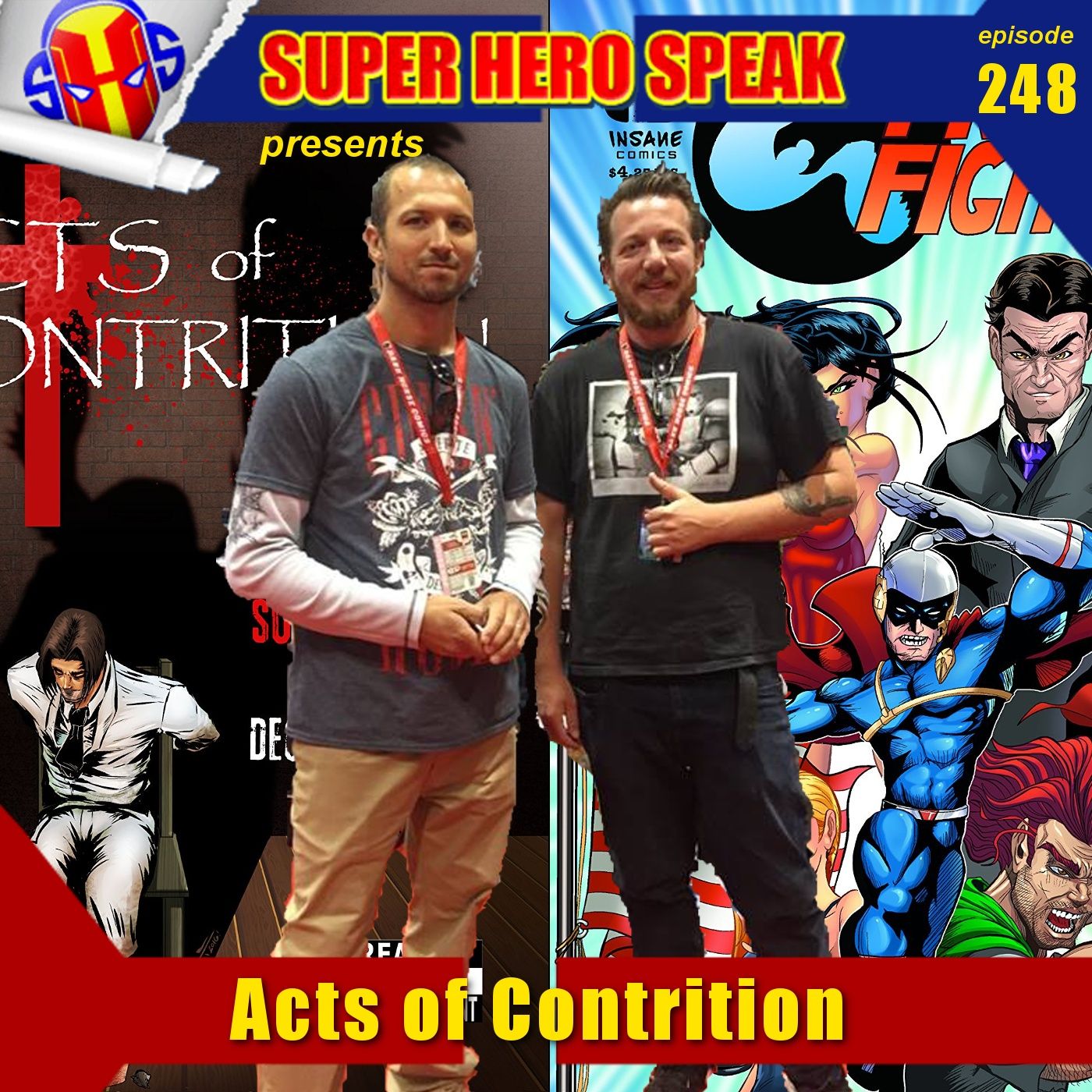 In this episode the guys are visited by returning guests Michael Heitkemper and Ariel J. Fulcher. The creative team behind Freedom Fighter and Acts of Contrition from Insane Comics. They tell the guys all about what they've been up since they were last on the show and all about their new book Acts of Contrition. Also Ariel tells the guys what it's like to be mistaken for The Little Mermaid. All this and more in this episode, so sit back and enjoy.