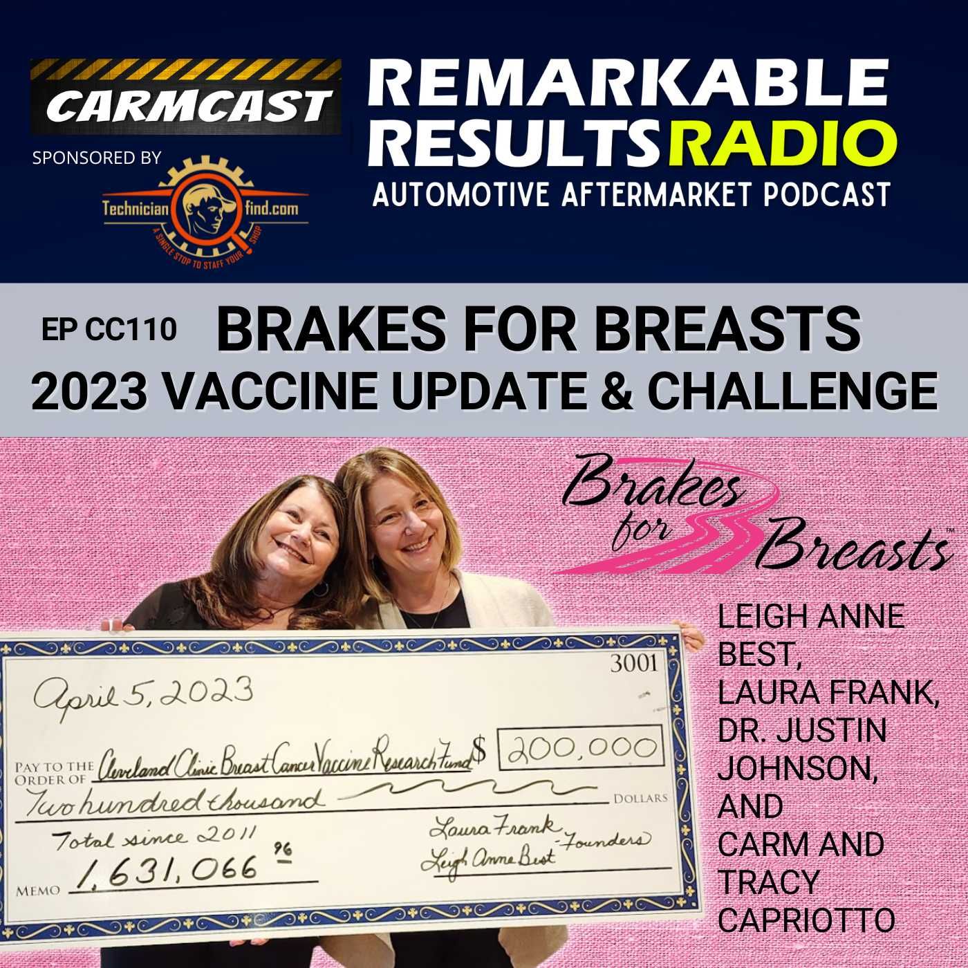 Exploring the Brakes for Breasts Campaign: Raising Funds for Breast Cancer Vaccine Research at the Cleveland Clinic The Brakes for Breasts campaign, every October, supports breast cancer vaccine research at the Cleveland Clinic. The co-founders of the campaign, Leigh Anne Best and Laura Frank, discuss the importance of finding a cause that aligns with their values and the challenges of funding vaccine research. Justin Johnson, PhD, provides updates on the progress of the clinical trials for the vaccine. Our panel discusses the success of the campaign and its goals for the future, encouraging independent repair shops to participate and donate 10% of labor and parts for brake jobs. They also emphasize the impact of the campaign on cancer research and encourage listeners to get involved. We are challenging the industry to reach a goal of $369,000 or even $400,000 for the next year and to involve at least 500 shops. This is a simple and effective program to offer to your customer.vite anyone involved to tour the lab and see the impact of their contributions. Thanks to our Partner, Technician Find. If you are tired of struggling to find skilled automotive technicians for your independent auto repair shop, say goodbye to the endless search and let Technician Find be your solution. We are a 'Single Stop To Staff Your Shop.' Click Here for Technician Find Connect with the Podcast: -Join our Insider List: https://remarkableresults.biz/insider -All books mentioned on our podcasts: https://remarkableresults.biz/books -Our Classroom page for personal or team learning: https://remarkableresults.biz/classroom -Buy Me a Coffee: https://www.buymeacoffee.com/carm -The Aftermarket Radio Network: https://aftermarketradionetwork.com -Special episode collections: https://remarkableresults.biz/collections
