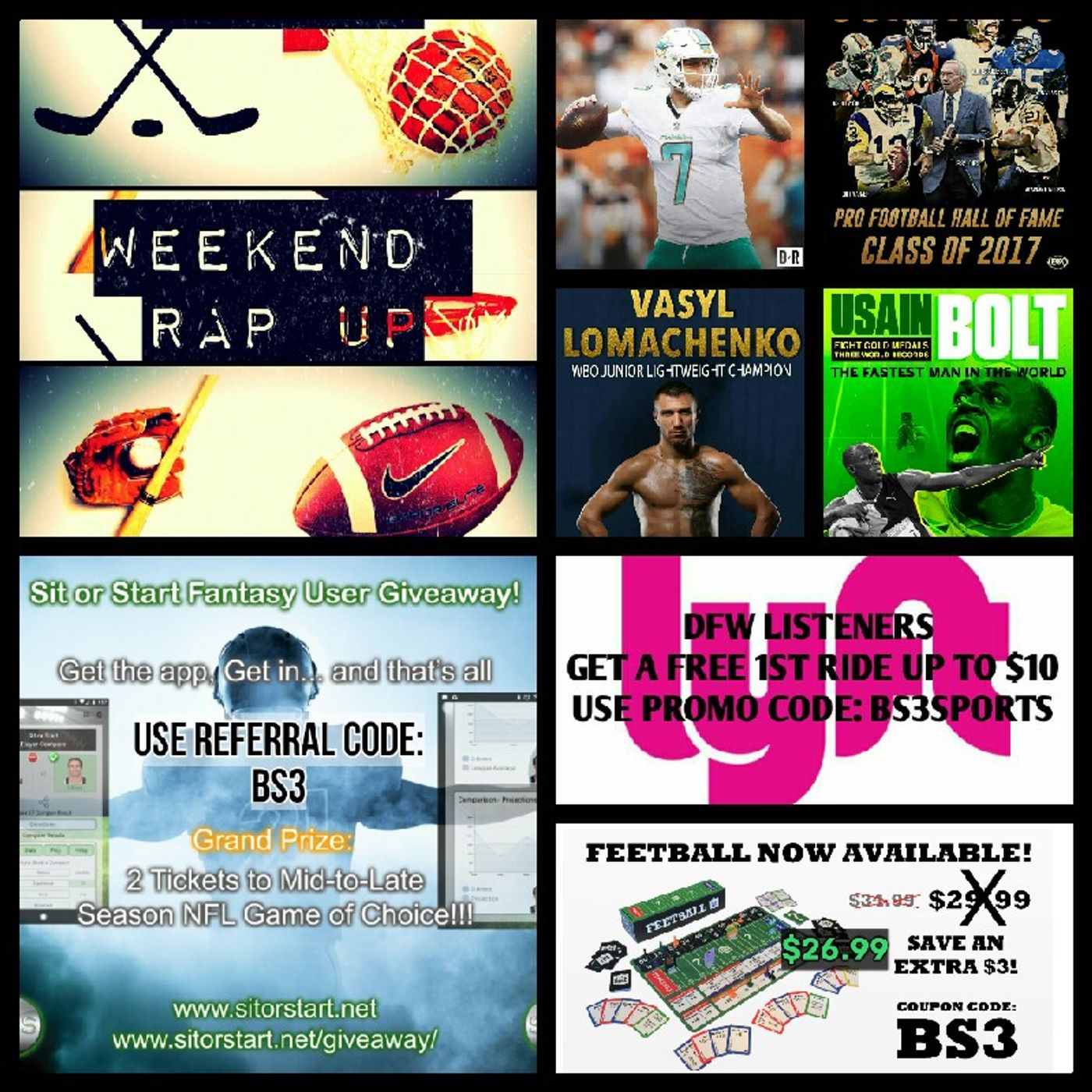 Lyft Dallas/Fort Worth Listeners, get a free 1st Ride up to $10 using Promo Code: BS3SPORTS